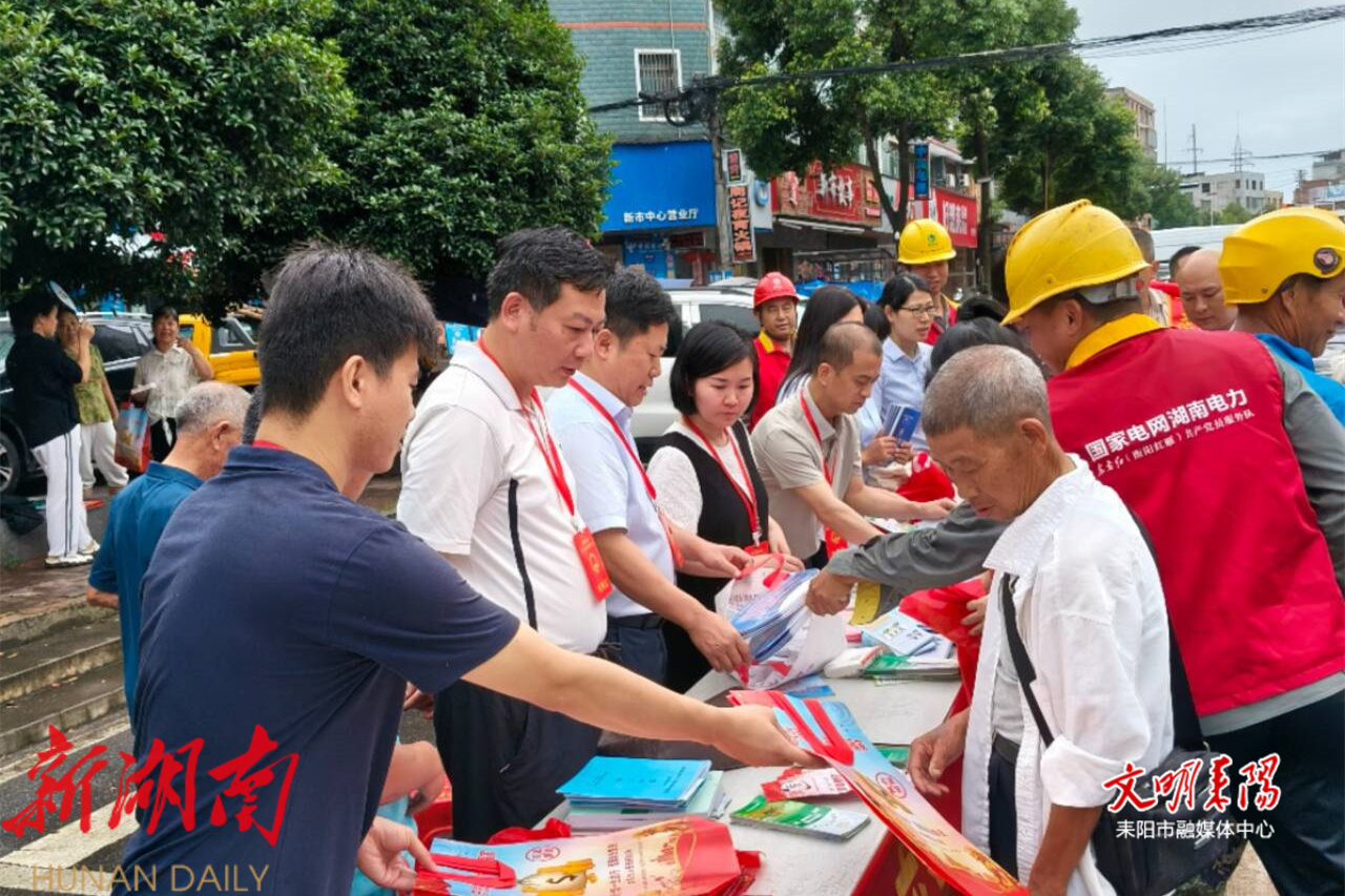 耒阳融媒6月19日讯(记者 江维东 ) 6月18日,新市镇联合应急管理、消防、市场监管等多个职能部门,在该镇街道市场旁开展综合安全宣传活动,为群众送上“安全知识大礼包”,全方位筑牢安全防线。