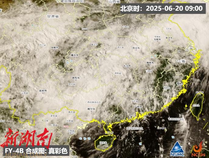 图为6月20日风云四号B星卫星云图,梅雨区降水云系清晰可见。图/国家卫星气象中心