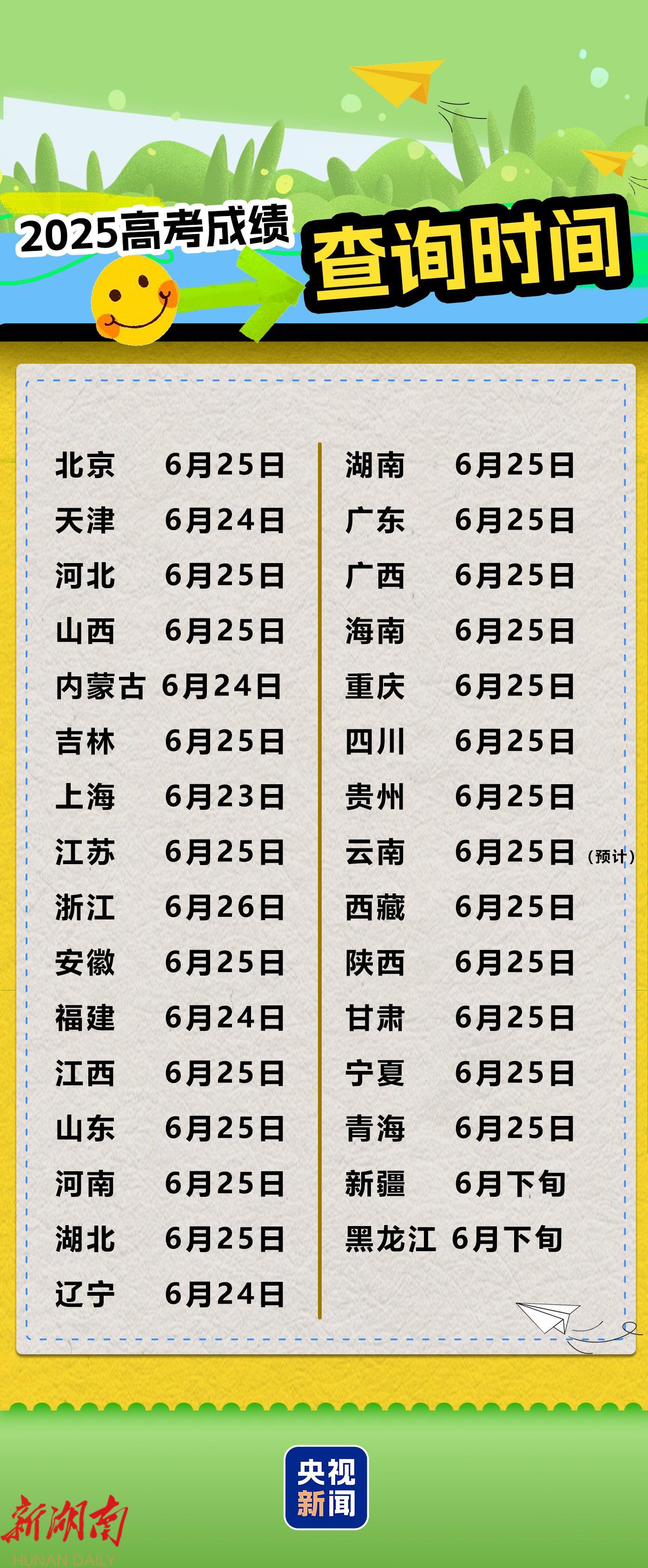 以下为各地公布的高考查分时间汇总↓↓↓更多具体信息请关注各地教育招生考试院官网。