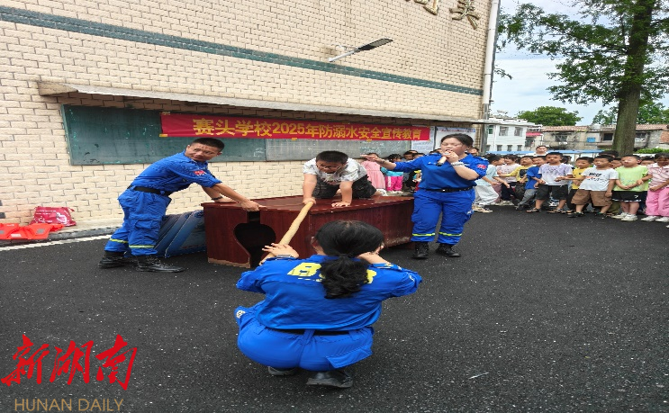 湖南日报·新湖南客户端6月20日讯 (通讯员 易雪 ) 为增强师生安全意识,提升自救互救能力,6月19日,湘阴县南湖洲镇赛头学校联合蓝天救援队,为全校师生带来“沉浸式” 防溺水安全教育课,为孩子们的生命安全筑起坚实屏障。
