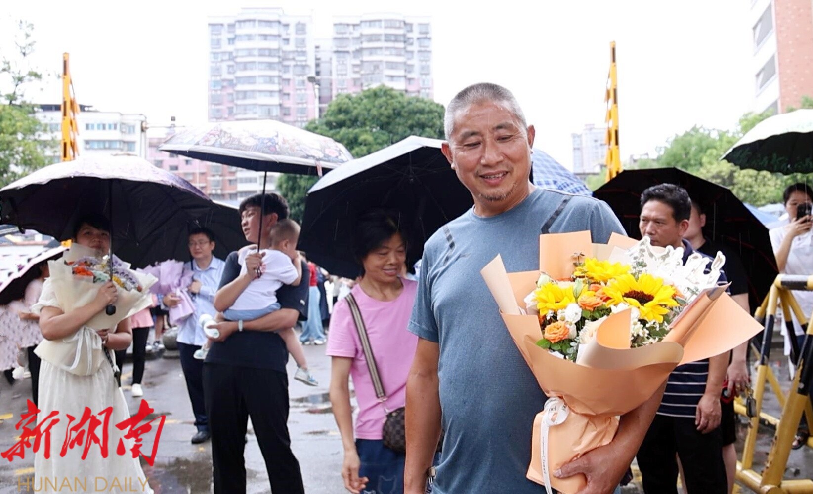 考场外,家长们在雨中翘首以盼。有人高举着寓意"167要录取"的定制花束,有人捧着金灿灿的向日葵,还有姐姐提着弟弟最爱的奶茶。这一抹抹温暖的色彩,在雨中格外动人。