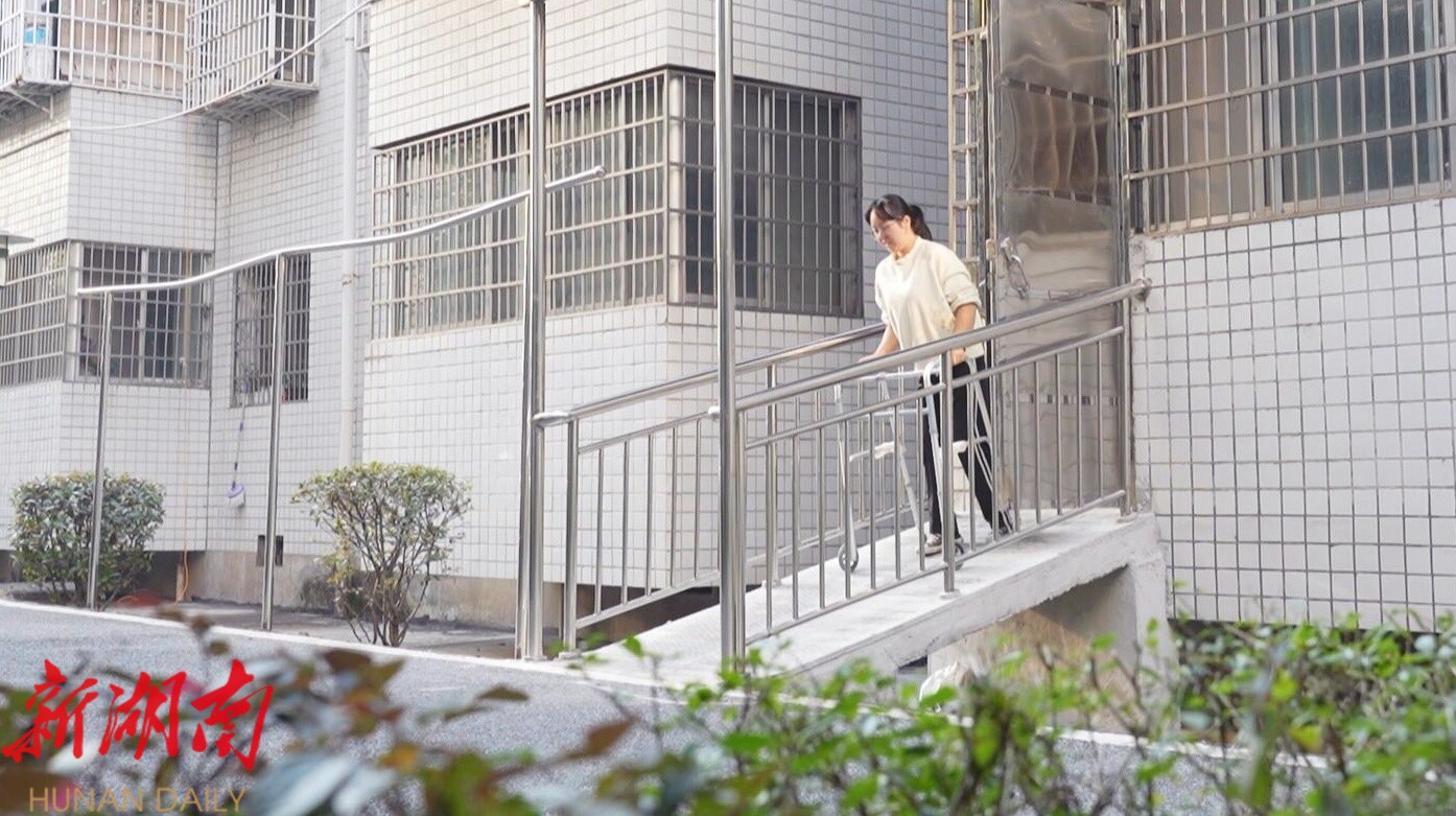 沙塘湾街道俩塘社区居民周妮说:“以前要走楼梯出门,没有人在家里的话,我根本就出不了门,现在我可以拄着拐杖出去看一看,很自由。”