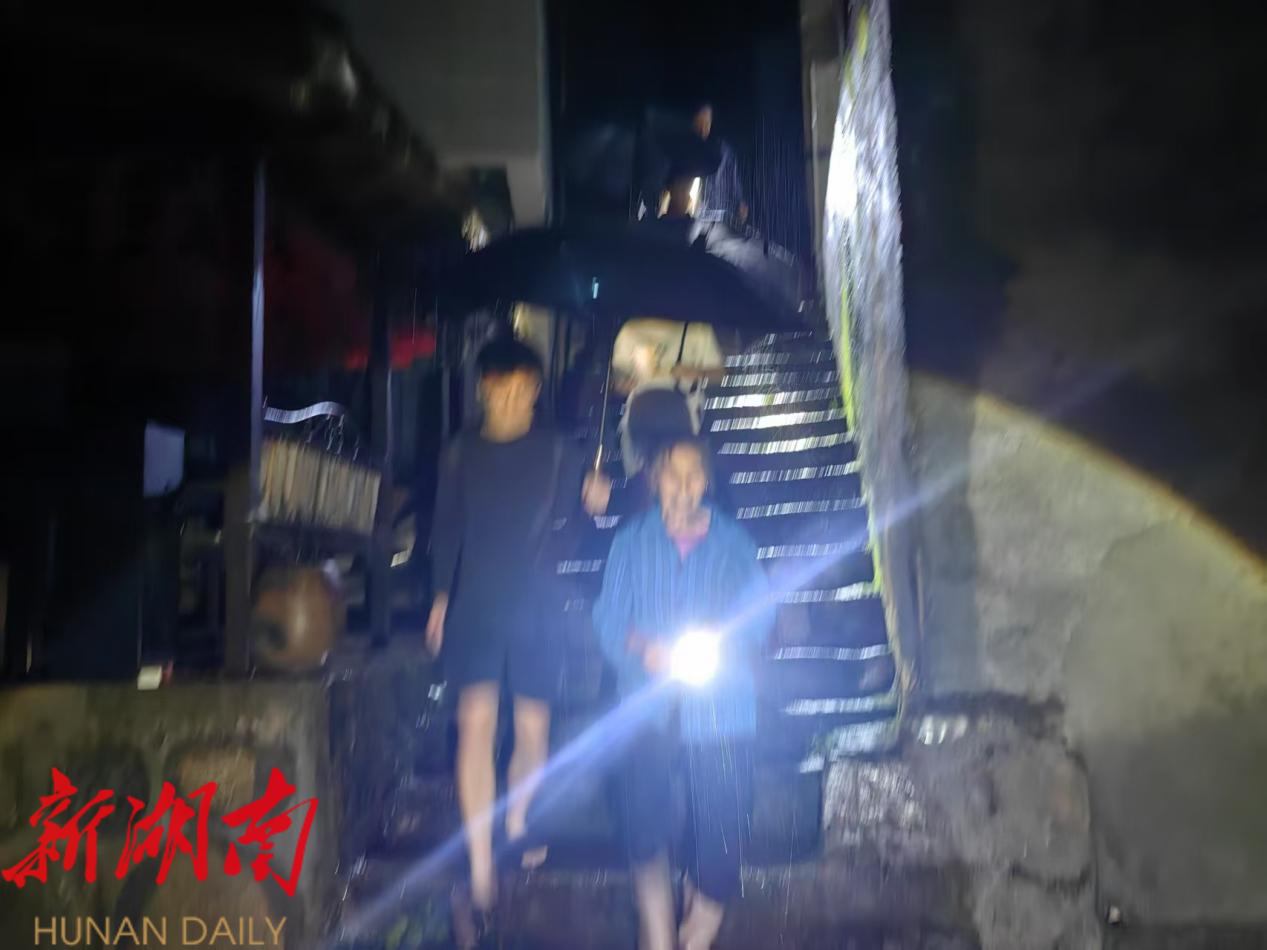 受连续强降雨影响,澧水北源凉水口镇水位急剧上涨,位于凉水口镇低洼地区的长潭河村成为一座孤岛。凉水口镇政府干部在全镇巡查过程中,收到长潭河村临河居住群众4户7人不愿从自建房搬出的消息。此时通往长潭河村的公路被洪水淹没,无法通行,5名政府干部跋山涉水步行到达长潭河村,现场进行劝说。“老人家,今天晚上降雨量是昨晚的两倍,你赶快收拾一下,先到村部住。”最终在镇工作人员、村两委和驻村工作队的共同劝说下成功撤出山洪危险区域。