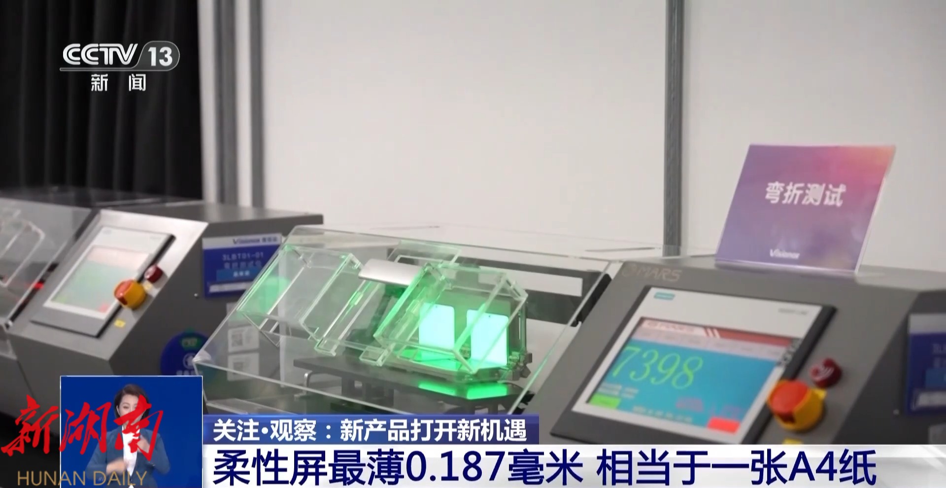 目前,这里生产的柔性屏最薄可达0.187毫米,厚度和一张A4纸差不多。 通过触控一体化技术、去偏光片等工艺,把各种功能层都集成到屏幕内部,厚度变成传统屏幕的三分之一甚至更薄。