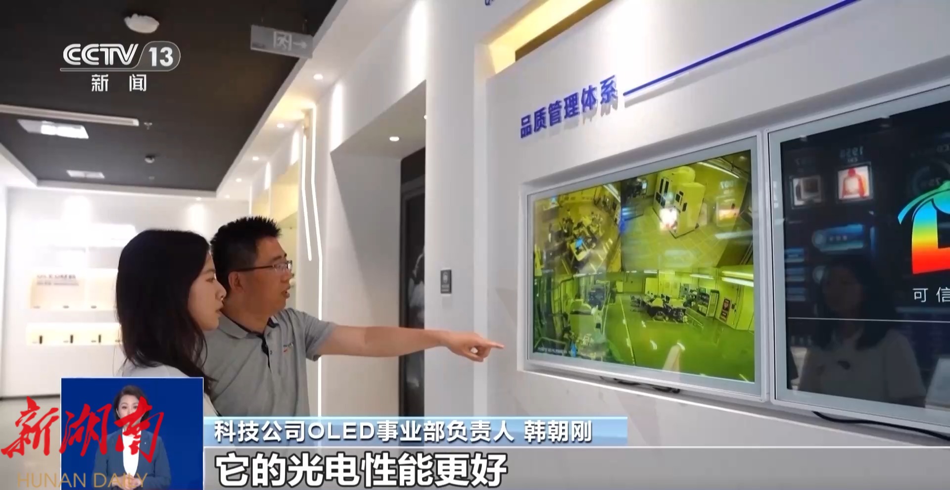 在显示屏企业对面,就是上游的配套基材厂。企业通过自主创新,研发出拥有自主知识产权的发光材料,性能领先国际同类产品,解决了柔性屏关键材料进口垄断的问题,实现了国产化替代和量产。
