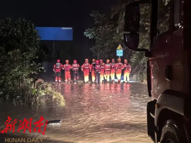 省消防救援总队抽调消防救援队员组成抗洪抢险编队赶赴张家界、湘西州,开展抢险救援。国家消防救援局湖南机动队伍从怀化、长沙两地调派队员,驰援强降雨地区。