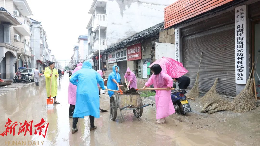 “大家再加把劲,早点把道路上的垃圾清走!”6月21日,记者来到了永定区阳湖坪街道周家坊村、陵阳村、王潭新村,看到阳湖坪街道及各村的党员干部、环卫人员正齐心协力,争分夺秒开展清淤清扫工作。
