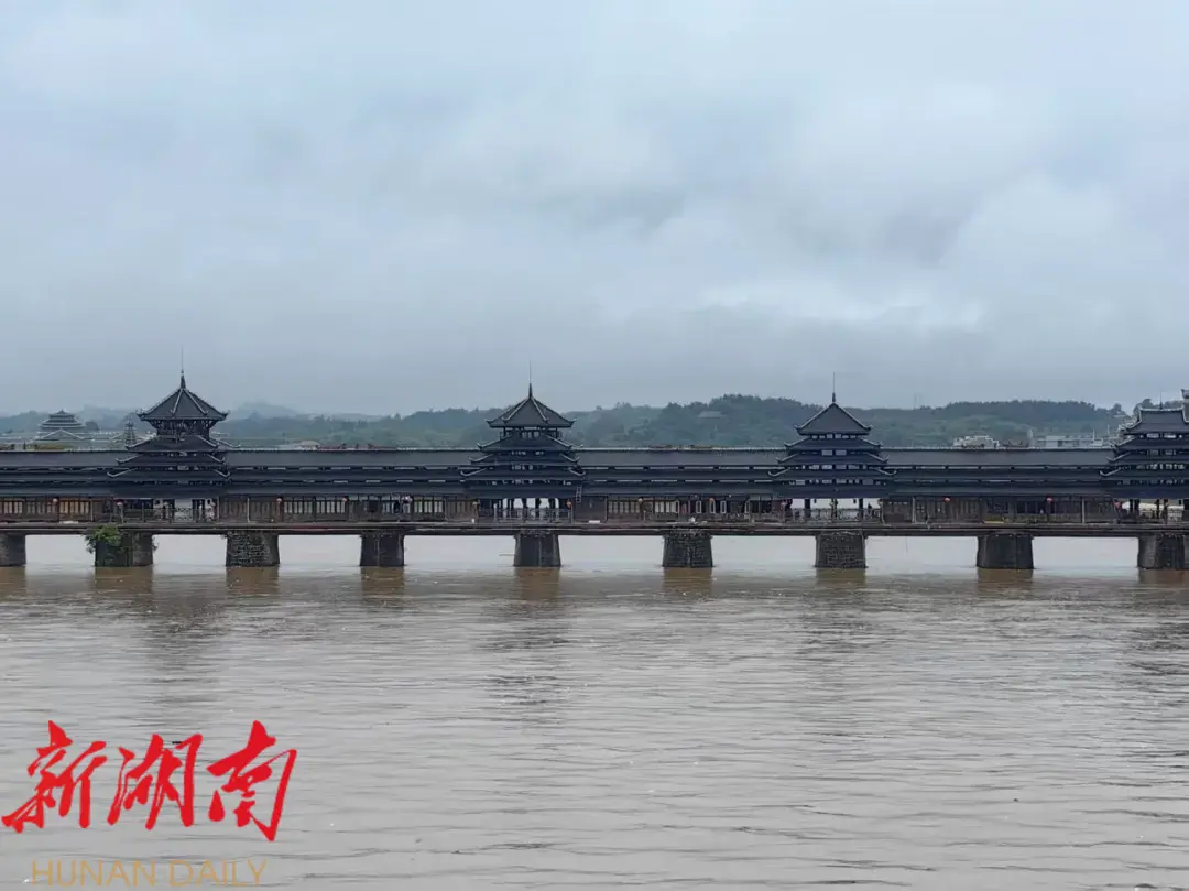 怀化市芷江侗族自治县舞水河因强降雨导致水位猛涨。