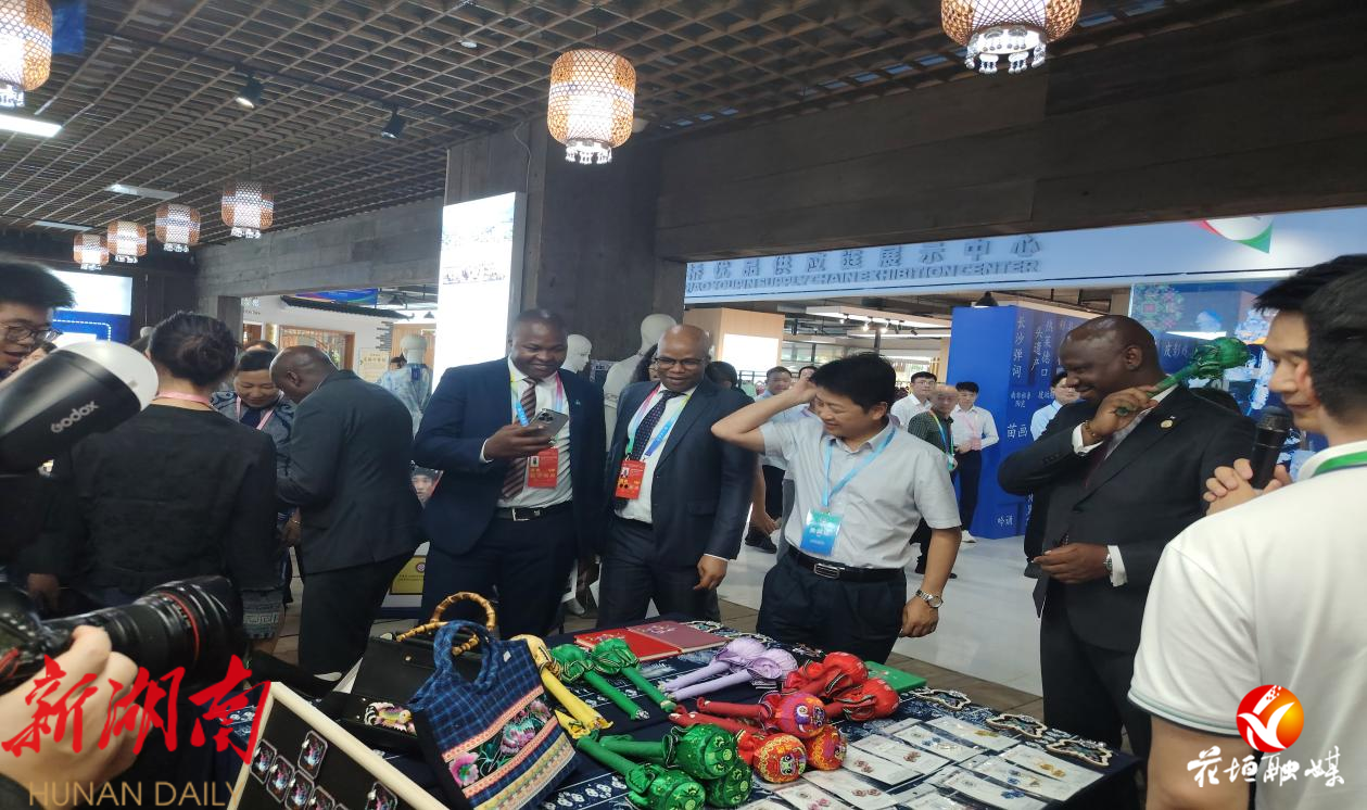 在展会现场,花垣苗绣的展位前人头攒动。精美的苗绣成品展示让观众们惊叹不已,纷纷驻足欣赏、拍照留念。同时,传承人还现场演示苗绣技艺,手把手教观众穿针引线,让大家近距离感受这一传统技艺的独特魅力。许多外国嘉宾对苗绣表现出了浓厚的兴趣,他们不仅购买了苗绣作品作为纪念品,还表示希望能够进一步了解花垣苗绣文化,加强中非之间在文化艺术领域的交流与合作。