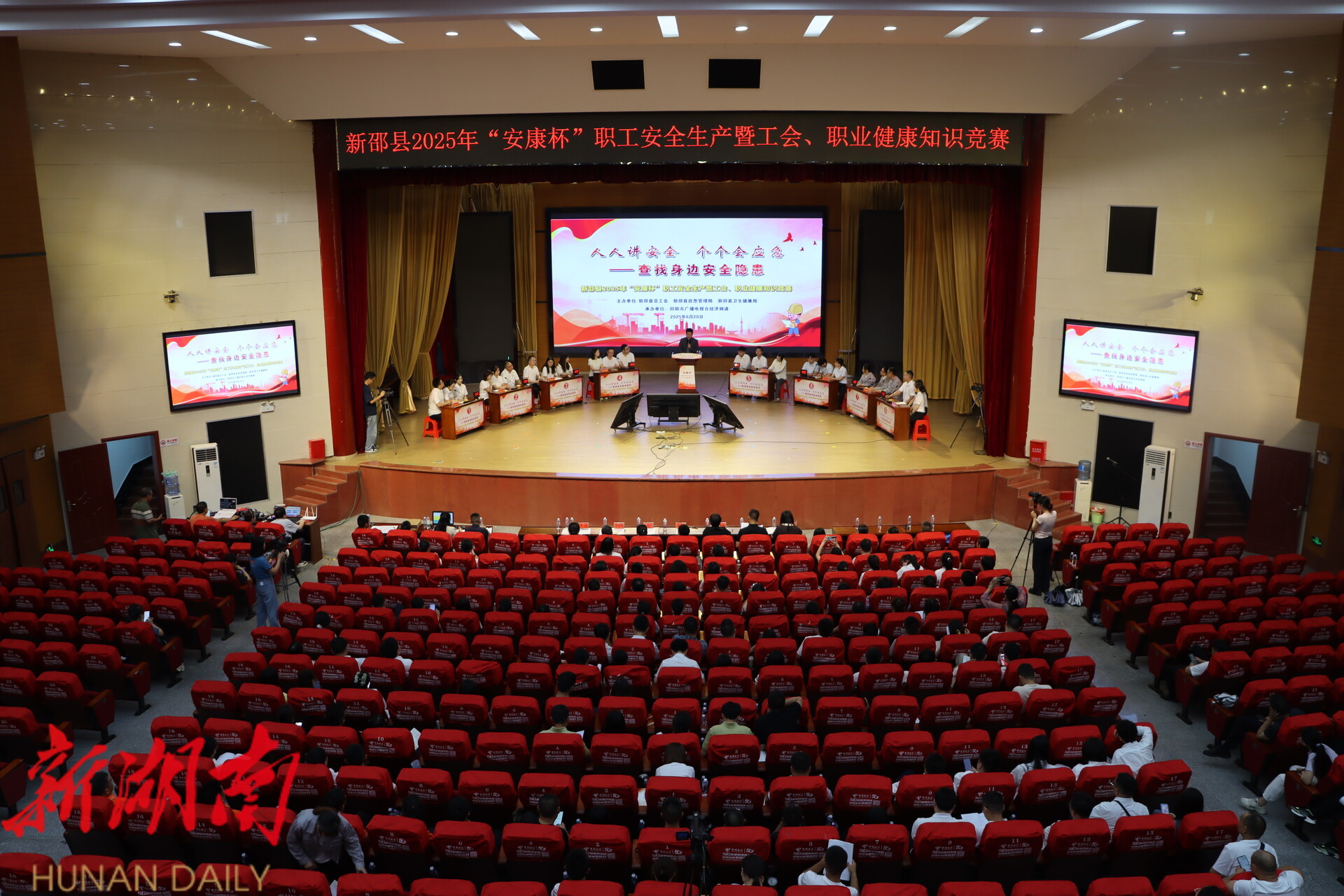 新新邵客户端6月21日讯 (记者 杨明航 刘丈国)6月20日,新邵县总工会联合县应急管理局、县卫生健康局在县委大礼堂举行了2025年“安康杯”职工安全生产暨工会、职业健康知识竞赛活动。开幕式上,县人大常委会副主任、县总工会主席石争光指出,此次“安康杯”竞赛以“人人讲安全 个个会应急——查找身边安全隐患”为主题,希望大家以赛促学,将安全知识内化于心、外化于行,共同筑牢安全生产防线。