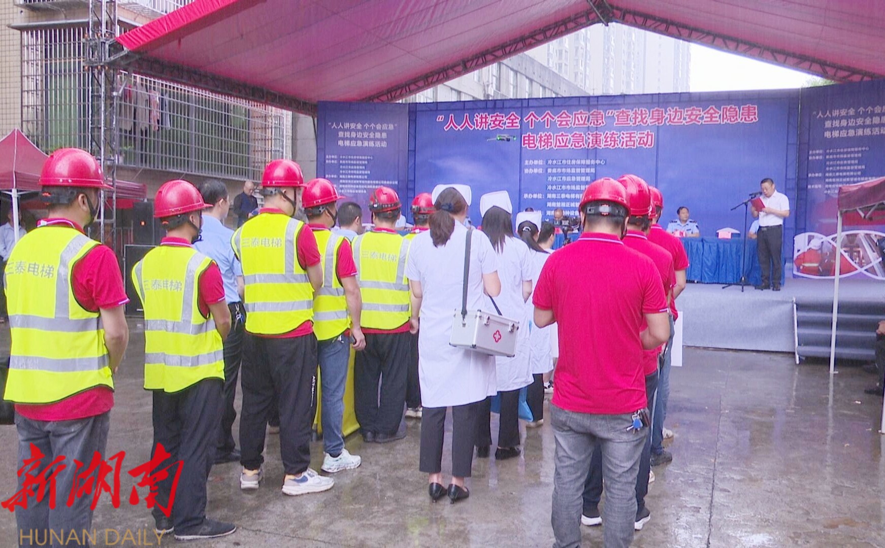 湖南日报·新湖南客户端6月23日讯(通讯员 杨风)22日,由冷水江市住房保障服务中心联合多部门开展的“人人讲安全,个个会应急——查找身边的安全隐患”电梯困人应急救援演练在金竹山矿业家属小区正式启动。