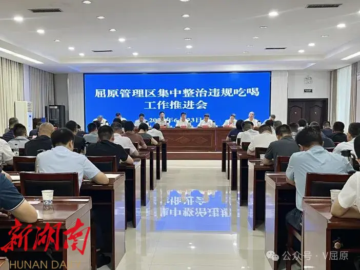 湖南日报·新湖南客户端6月24日讯(通讯员: 魏璐璇) 6月23日,屈原管理区集中整治违规吃喝工作推进会召开。区党委书记向科军出席并讲话,强调要深入贯彻落实习近平总书记关于加强党的作风建设的重要论述和中央八项规定及其实施细则精神,进一步学习贯彻中央党建工作领导小组会议、省委市委相关会议精神,全面深化集中整治违规吃喝工作。区党委副书记、管委会主任沈小星主持,全体在家区级领导出席。
