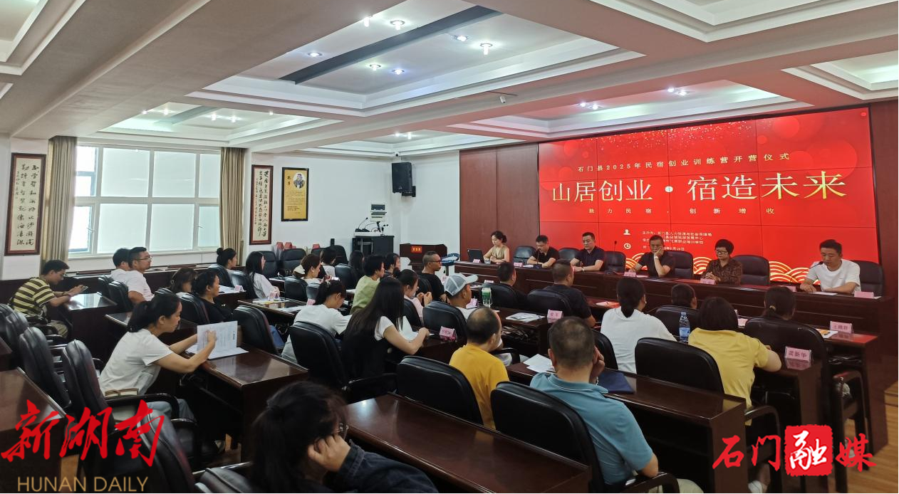 新石门客户端6月24日讯(通讯员 陈徽 闫梦芸)“走进石门 清爽一夏”旅游季活动火热开展之际,为深挖县域优质文化旅游资源,重点推动壶瓶山、东山峰、白云山等自然资源优势地区发展民宿避暑游,打造区域特色“清凉经济体系”,让石门的“清凉”资源热起来,由县人力资源和社会保障局主办、全域旅游发展中心协办的2025年石门民宿行业创业训练营于近日正式开营。