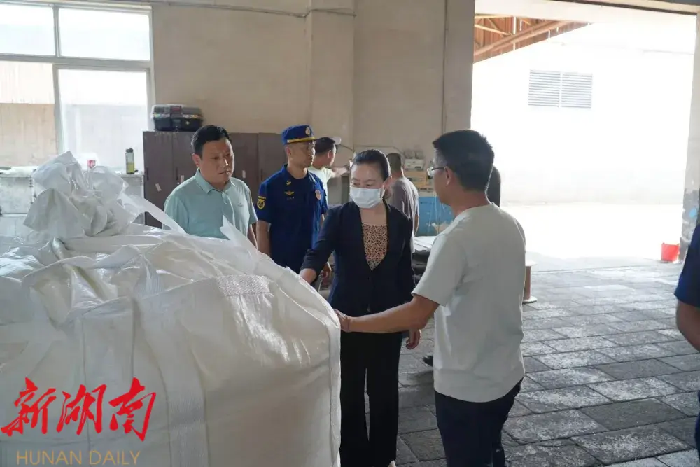 在谊诚科技、隆辉环保,叶春华检查了危险化学品硫磺的储存、管理和使用情况,查看了涉粉涉爆风险管控及有限空间作业安全管理、环保设备配备、有毒有害气体检测等情况,对检查中发现的问题进行了现场交办,要求立行立改、彻底整改。叶春华强调,安全生产既需要部门的严格监管,更需要企业的自觉自律,谊诚科技和隆辉环保作为涉化学品、环保材料企业,是安全生产督导检查的重点,企业更要时刻绷紧安全生产之弦,压实主体责任、杜绝形式主义,建立常态化隐患排查机制,紧盯重点部位和薄弱环节,及时自查自纠;要持续强化员工安全教育培训和应急演练,切实提升安全意识和防护自救能力;要确保消防基础安全设施规范有效,消防标志安装到位、清晰醒目,过期失效的消防器材及时更换;要坚决禁止生产区域内的“私搭乱接”等违规用电、用气行为,消除事故隐患。应急管理部门要发挥牵头作用,联动环保、消防等部门,形成监管合力,对重点行业领域开展拉网式、深入式检查,确保不留死角盲区。