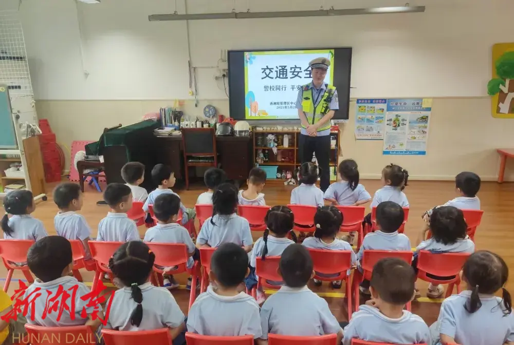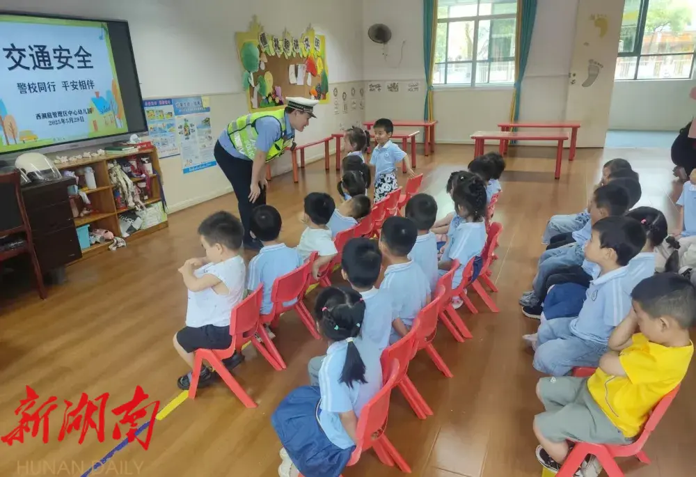 西洞庭融媒6 月1日讯(记者:姚鹏杰) 为在童心中播撒交通安全的种子,近日,区交警大队民警走进中心幼儿园,开展了一场别开生面的“警校同行,平安相伴”主题宣讲活动。