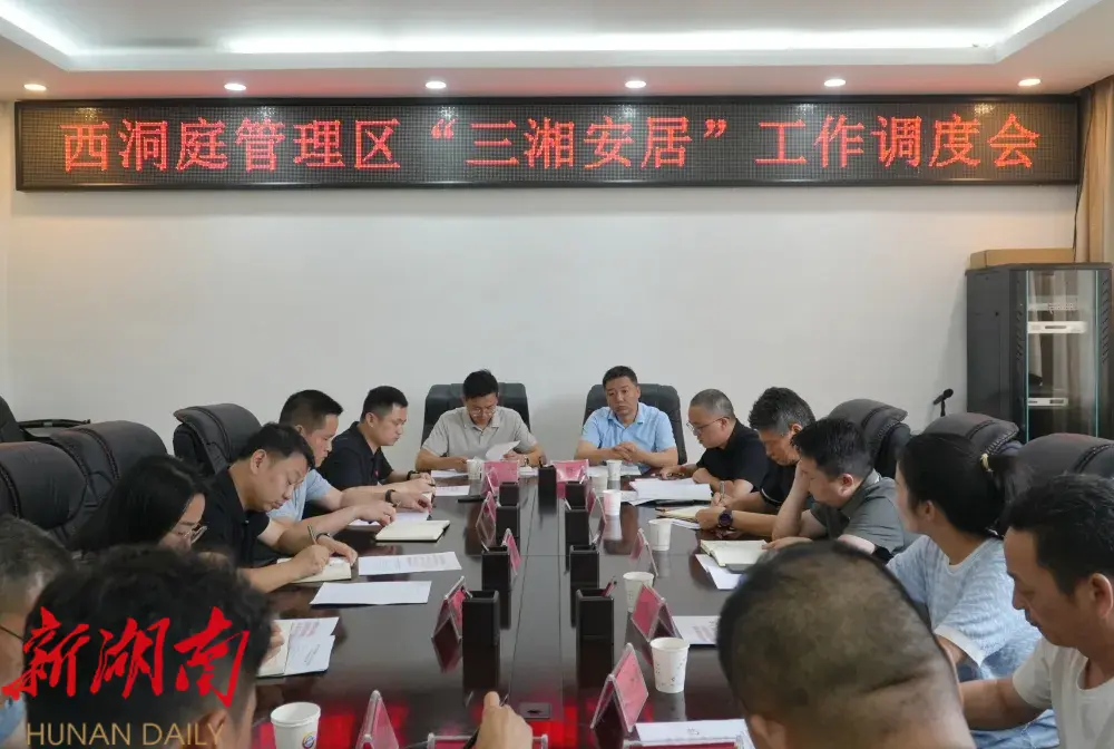西洞庭融媒 6 月10日讯(记者:姚鹏杰) 6月10日,西洞庭管理区“三湘安居”工作调度会在区办公楼会议室召开。区党委委员、纪委书记、监工委主任孙晖宇出席会议并讲话,区党委委员、管委会副主任覃政主持会议。