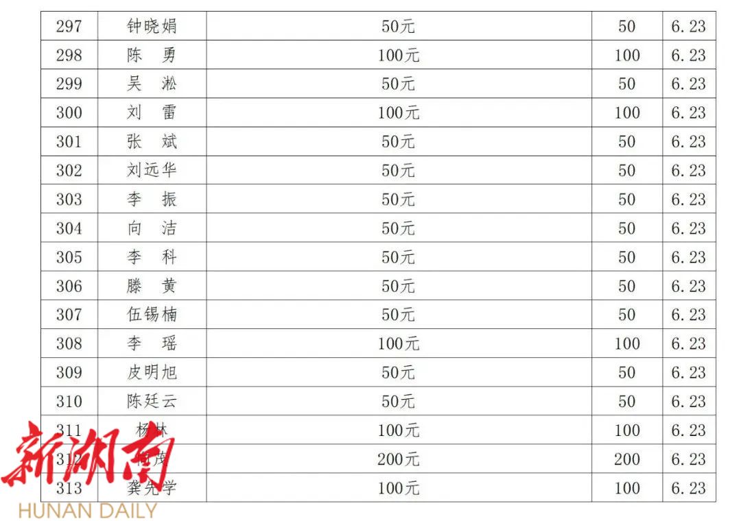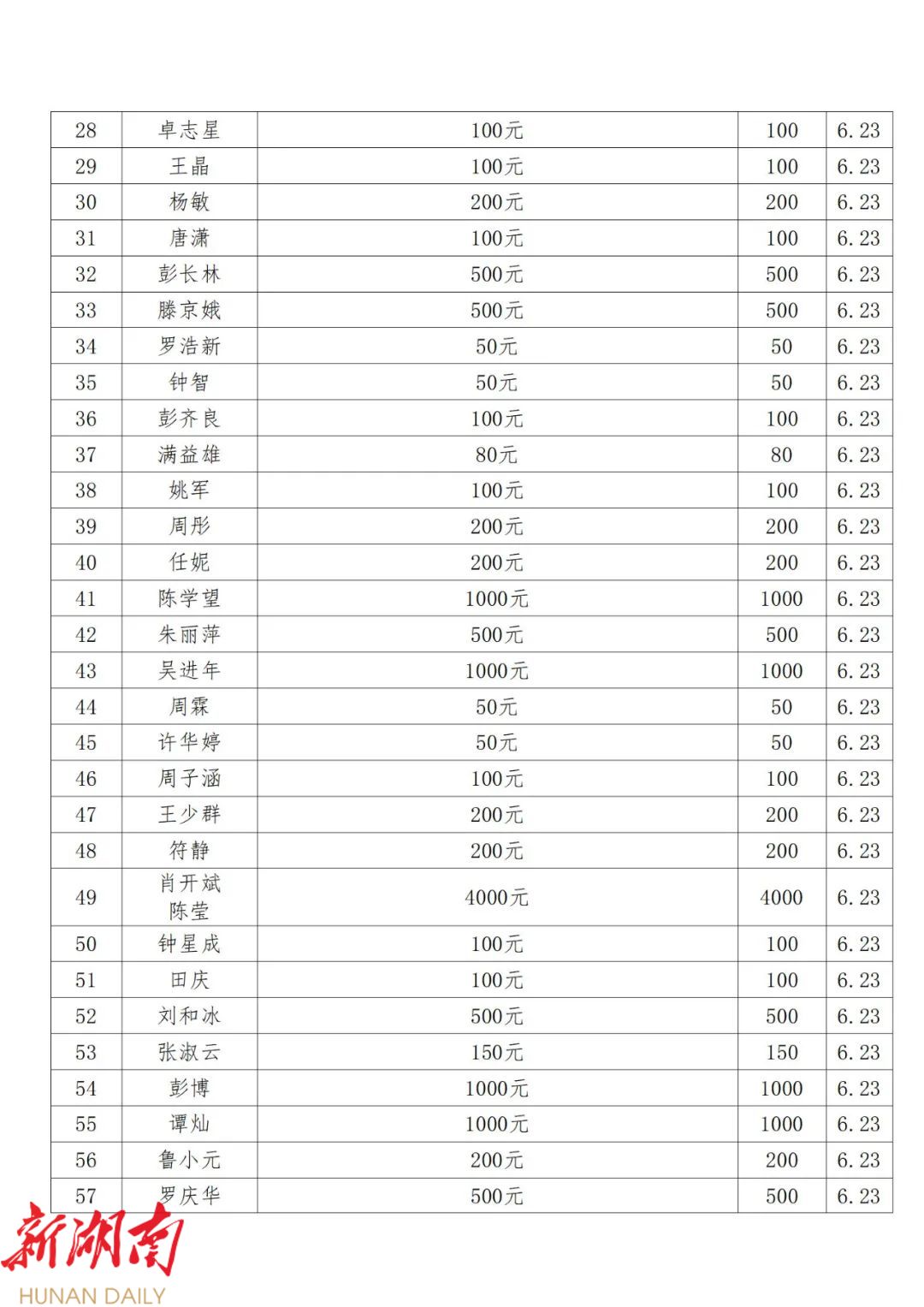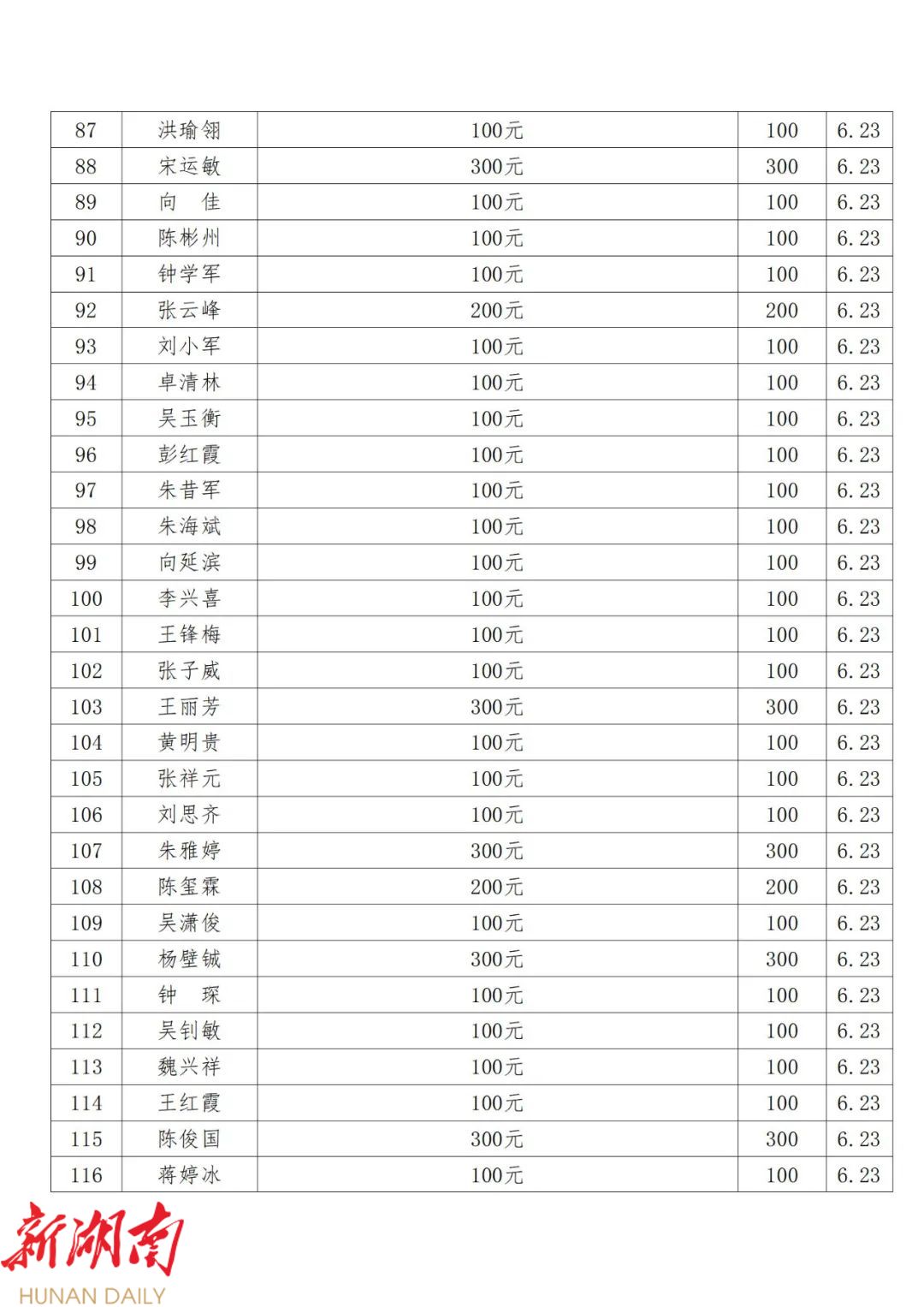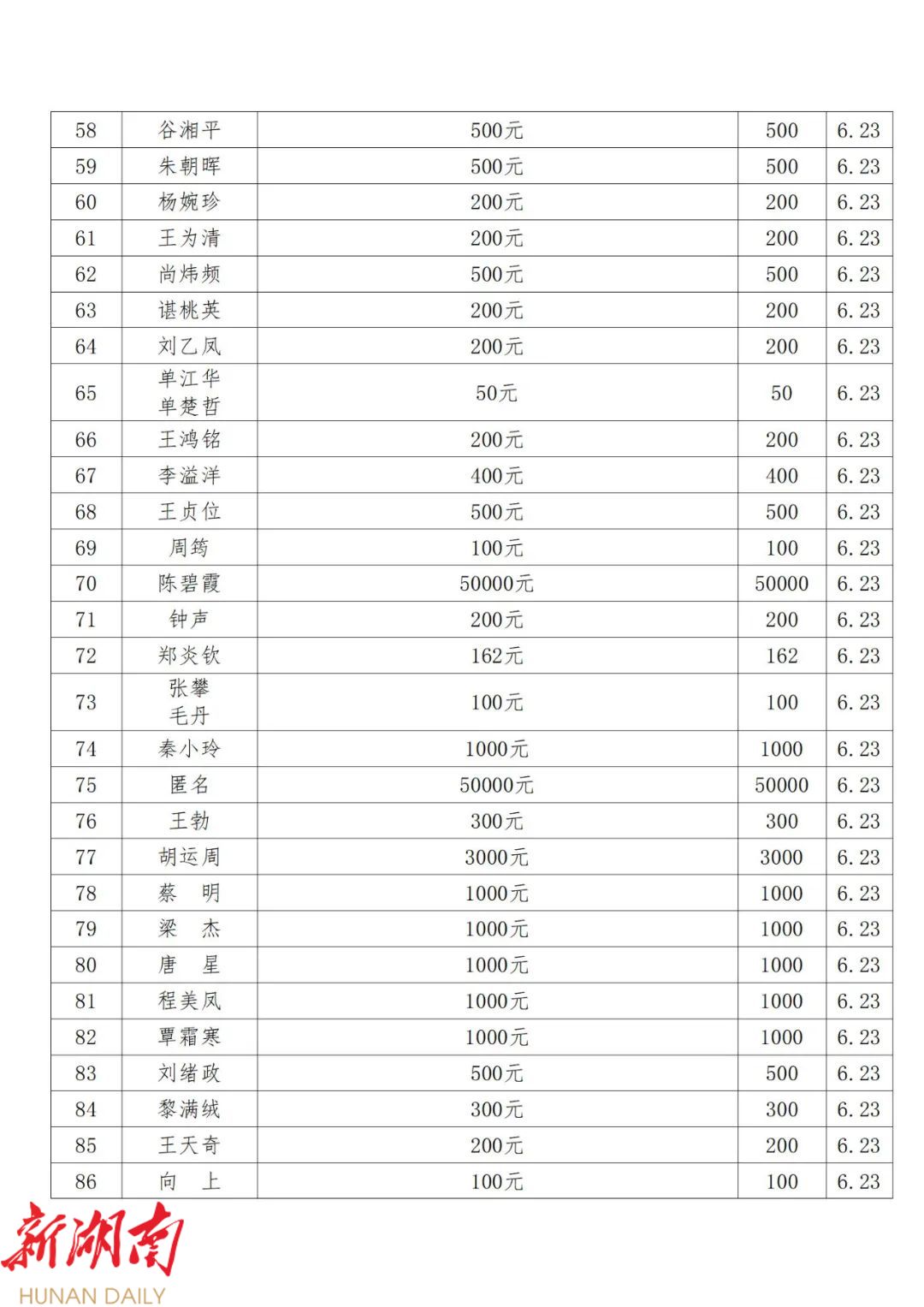 桑植县慈善总会“6·18”洪灾接收捐赠情况公示