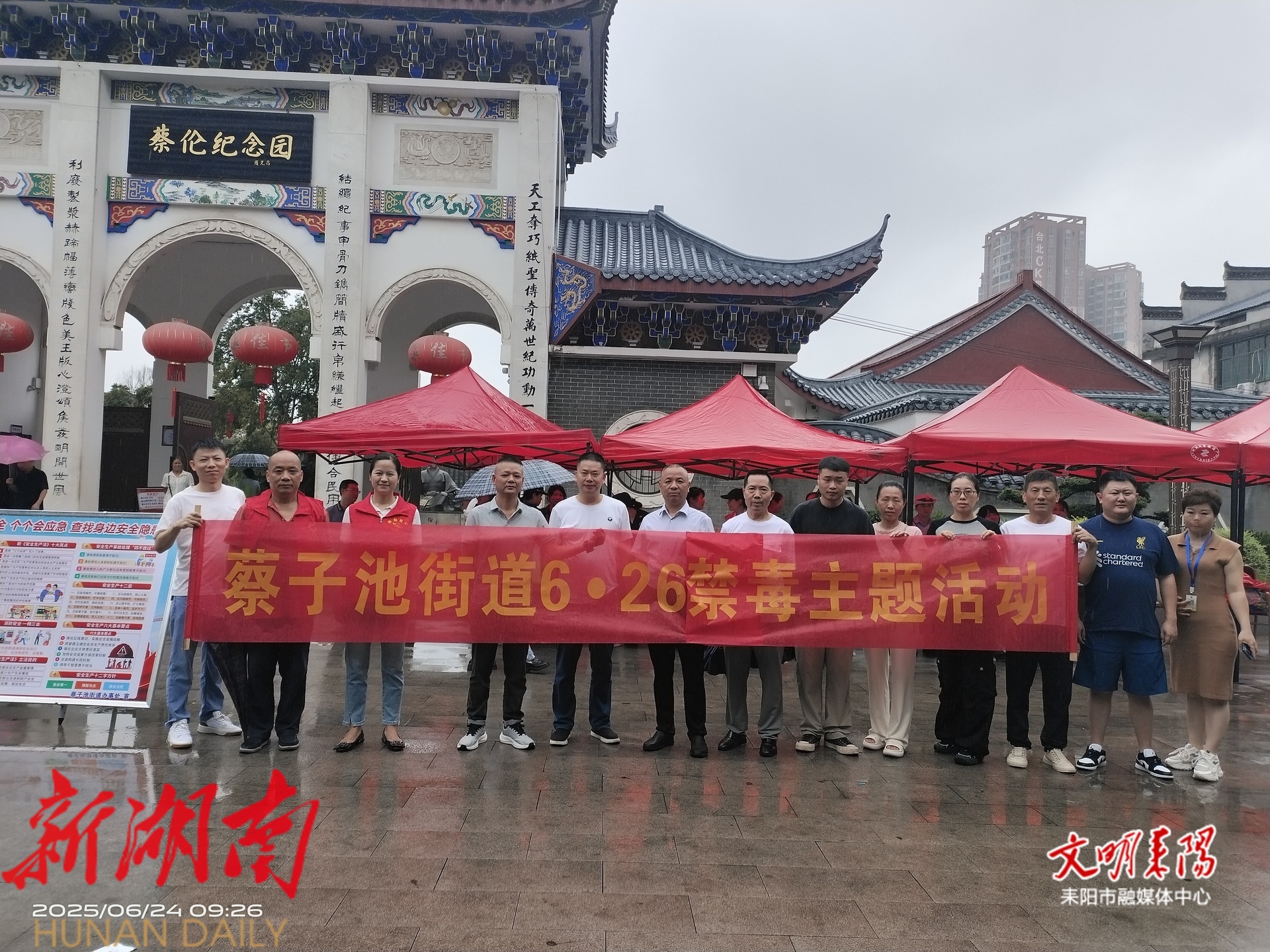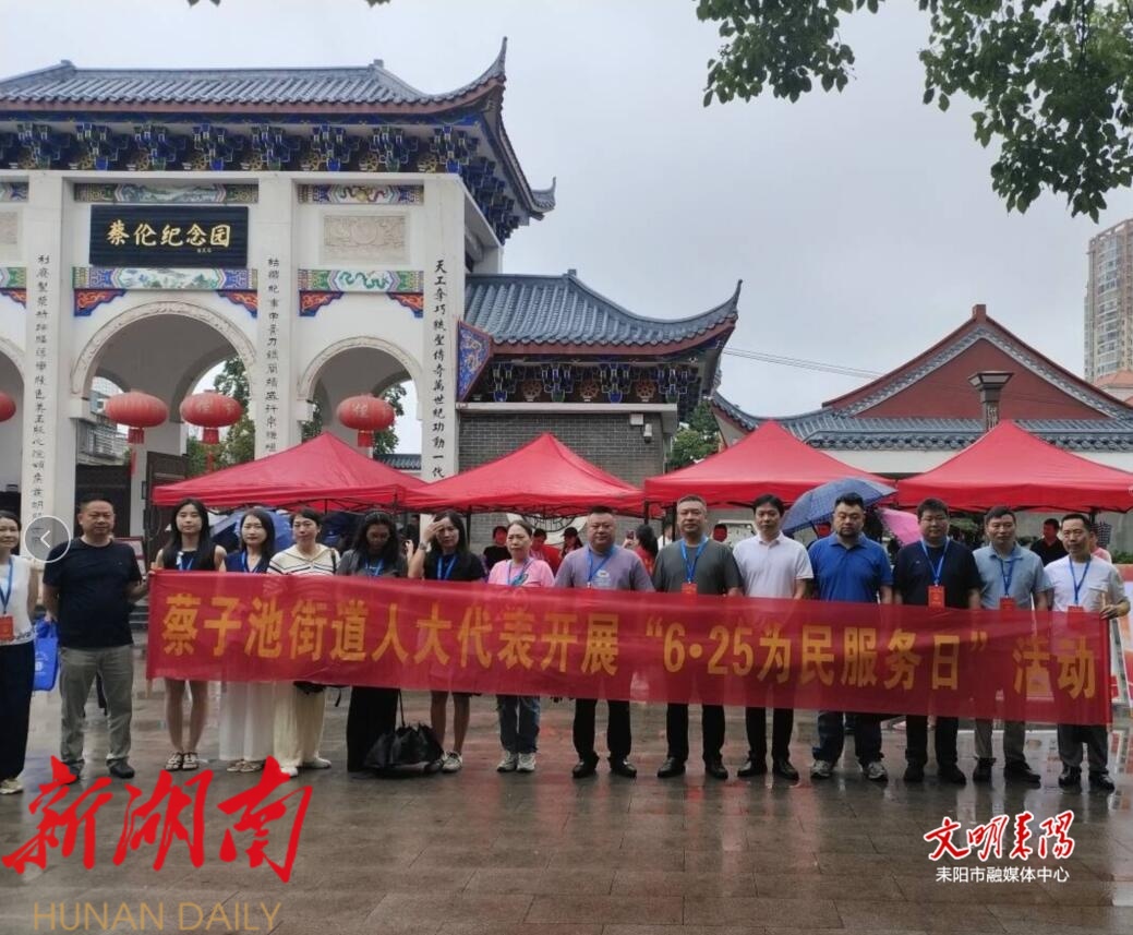 耒阳融媒6月24日讯(记者 江维东) 6月24日,蔡子池街道在蔡伦纪念园开展了一场内容丰富的多主题活动,活动内容涵盖有“人大代表6·25为民服务日”“安全生产月”“6·26禁毒宣传”、第8个信访宣传月以及防范非法集资宣传月等。