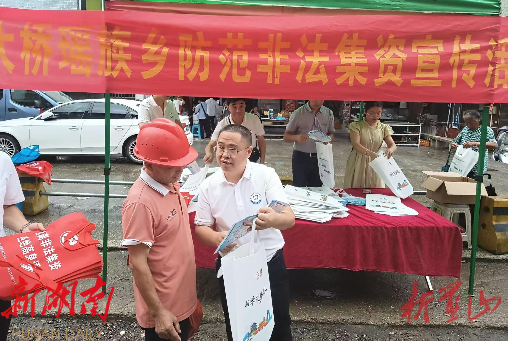 新蓝山客户端6月24日讯 (通讯员 肖洪玫)6月24日,大桥瑶族乡人大充分发挥代表联系群众的桥梁纽带作用,联合乡禁毒办、新时代文明实践所,协同蓝山县教育局,利用赶集日人员集中的有利契机,开展禁毒、防范非法集资及国家助学贷款政策集中宣传活动,全方位守护群众生命财产安全,推动教育惠民政策落地见效。