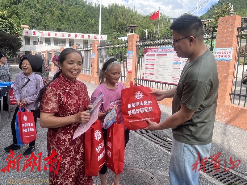 新蓝山客户端6月24日讯 (通讯员 廖志宇)6月24日,汇源瑶族乡开展以“守住钱袋子,护好幸福家”为主题的防范非法集资宣传活动。