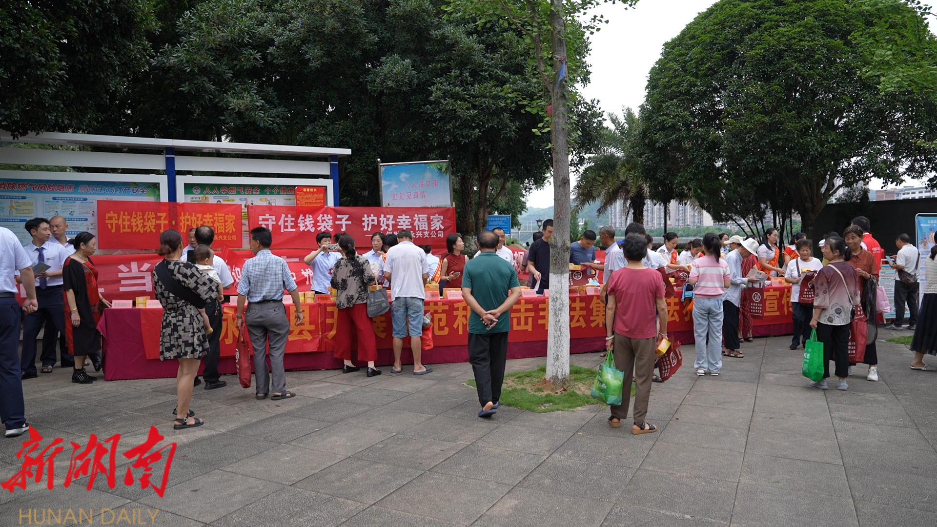 湖南日报·新湖南客户端6月24日讯(通讯员 朱志强 )6月24日,永兴县多部门在南大桥广场联合开展“守住钱袋子·护好幸福家”防范和打击非法集资集中宣传日活动。