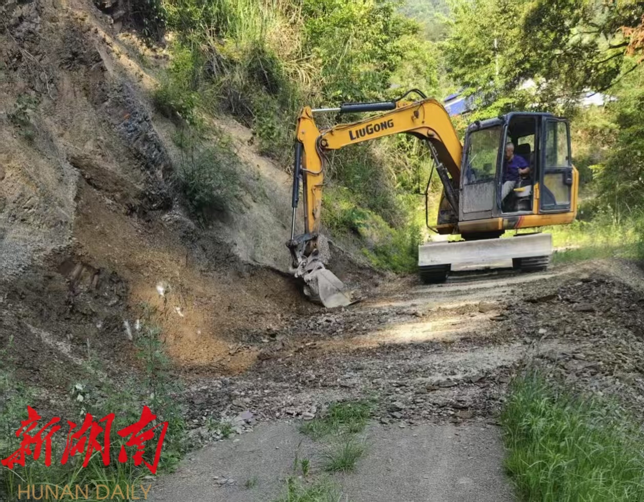 抢通现场,机械轰鸣与人工清障同步推进。在福建坡村路段,突击队采用“分层剥离、逐段突破”战术,挖掘机长臂挥舞清理落石,铲车紧随其后拓宽路面,党员群众手持油锯、铁锹清理倒树和淤泥。“路通了,心就踏实了!”福建坡村村民老张望着重新通车的村道感慨道。截至目前,该乡主干道已全部抢通,村级道路通达率达95%,累计清理倒树13处、落石52处,设置安全警示标识18处。