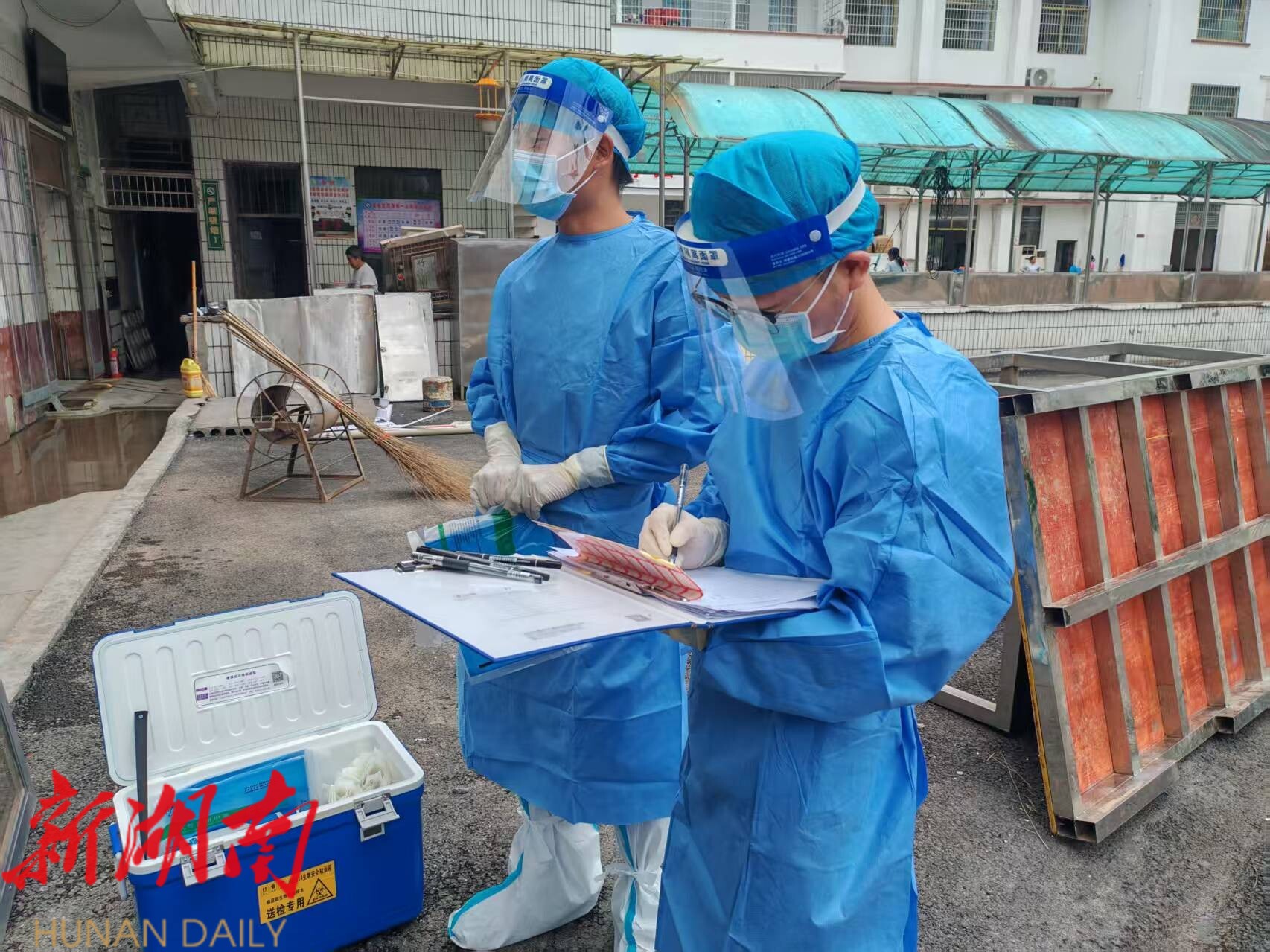 “洪水淹死的鸡鸭不能吃!”“84消毒液不能和洁厕灵混用!”“生水一定要烧开才能饮用!”6月20日下午,在受灾严重的八大公山镇细砂坪村临时安置点,匆匆赶来的张国兵和胡俊忠立即换上“红马甲”,就地改行干起卫生防疫指导工作。