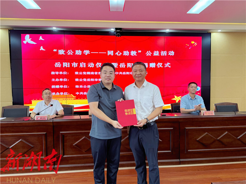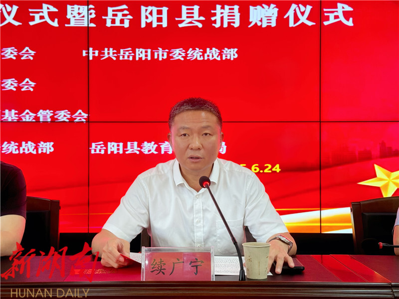 湖南日报·新湖南客户端6月24日讯(通讯员 周昱君) 为进一步推进教育帮扶工作,推动湖南省教育事业迈向高质量发展新台阶,6月24日,湖南省“致公助学—同心助教”公益活动岳阳市启动仪式暨岳阳县捐赠活动在岳阳县教体局举行。致公党岳阳市委会专职副主委谢模满,副县长续广宁出席,格乐专项基金管委会、市县相关部门、部分乡镇(街道)中心学校负责人参加活动。