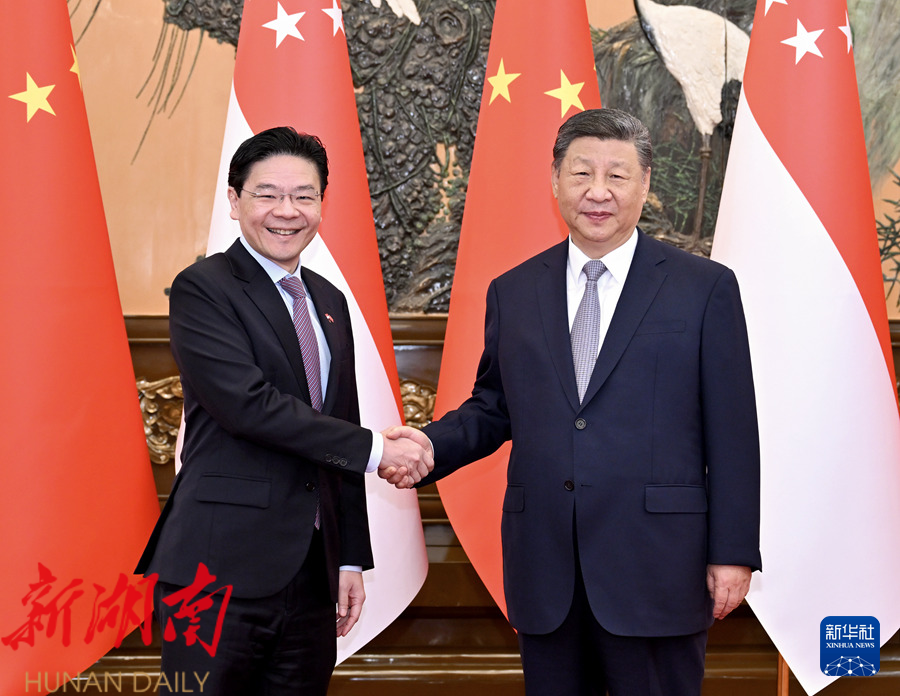 习近平强调,中新要牢牢把握两国友好大方向,始终从战略高度和长远角度看待和发展中新关系,确保航向不偏、动力不减。要筑牢中新友好政治基础,支持彼此核心利益和重大关切,以更高水平政治互信服务两国关系发展。中方欢迎新方继续深度融入中国发展,双方要深入推进共建“一带一路”合作,打造数字经济、绿色发展、人工智能等领域标志性成果,推动重大项目提质升级,续写高质量合作新篇章。要鼓励两国人民常来常往,深化人文交流合作,让中新友好更加深入人心。中方始终认为,和平、发展、合作、共赢的时代潮流不可阻挡,世界不能重拾霸权主义,不能被拖回丛林法则。中方愿同新方一道,站在历史正确一边、站在公平正义一边,共同倡导平等有序的世界多极化、普惠包容的经济全球化,推动世界走向和平、安全、繁荣、进步的光明前景。