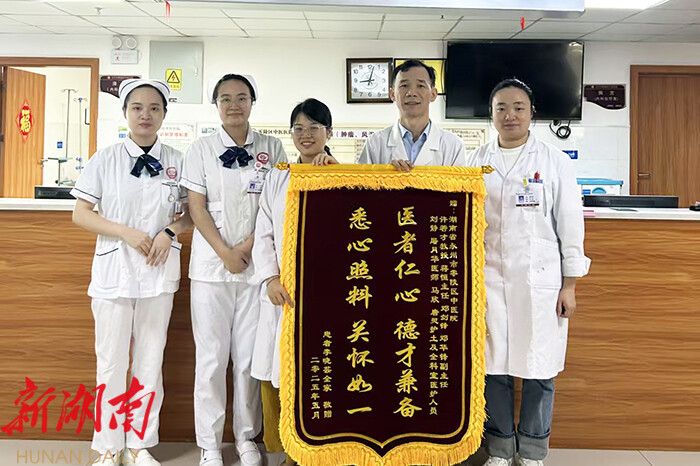 湖南日报·新湖南客户端6月24日讯(通讯员 丁建勋 蒋恒)近日,零陵区中医医院内二科收到两面特殊的锦旗。其中一面来自一位已故患者的家属,锦旗上“医者仁心德才兼备,悉心照料关怀如一”的烫金大字,不仅是对医疗团队专业技术的肯定,更是对生命末期人文关怀的深切感激。这一场景,正是该院以“技术+温度”双提升服务能力、创新基层肿瘤防治模式的生动体现。