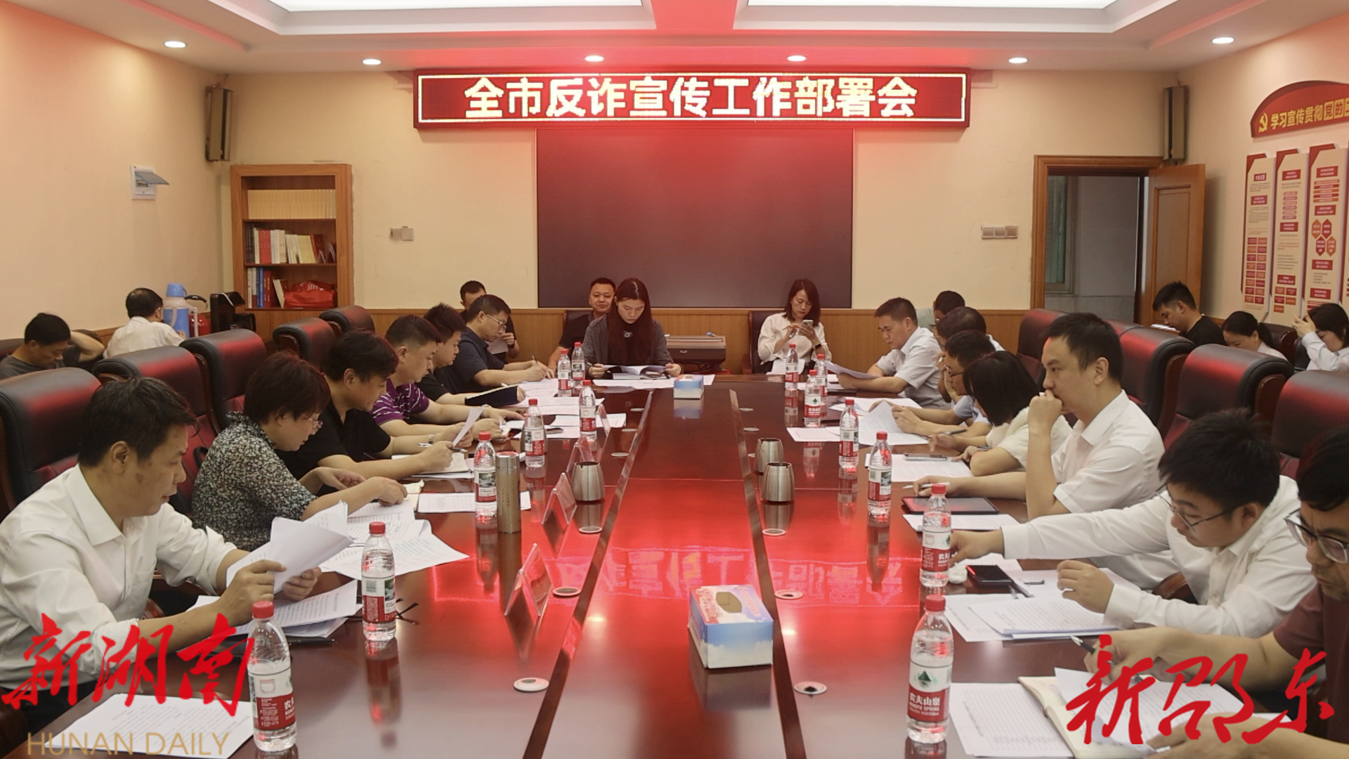会议通报了全市反电诈宣传工作情况;宣读了《邵东市2025年“全民反诈在行动”集中宣传月活动工作方案》;邵东农商银行、中国建设银行邵东支行、中国农业银行邵东支行、市住建局等单位作了表态发言。