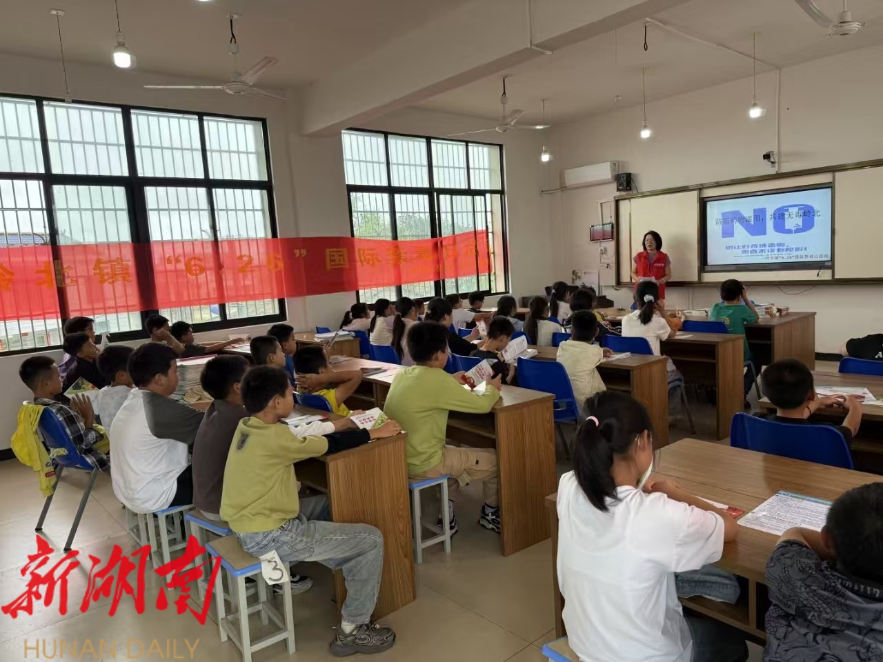 湖南日报·新湖南客户端6月24日讯(通讯员 殷若瑜) 为进一步增强全民禁毒意识,普及毒品预防知识,营造全社会参与禁毒的浓厚氛围,6月23日,湘阴县岭北镇会同该县总工会、人力资源和社会保障局,在沙田中学开展以“防范药物滥用,共建无毒岭北”为主题的“6.26国际禁毒日”宣传活动。
