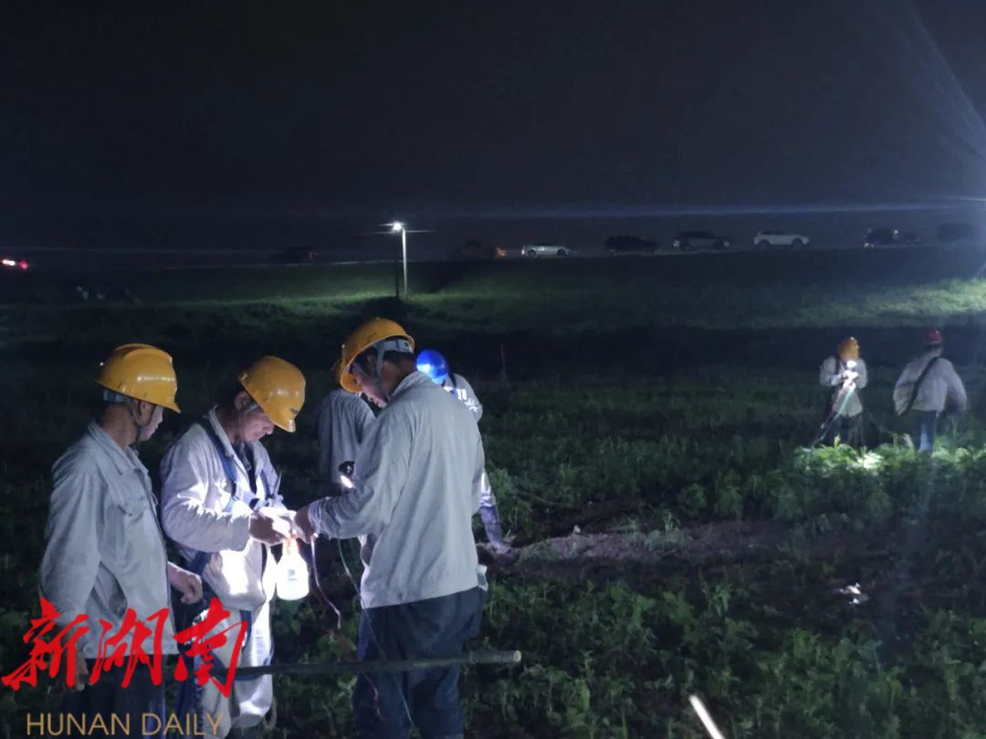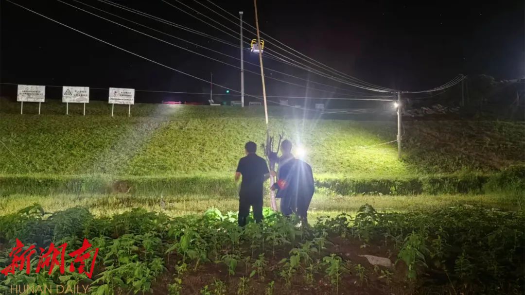根据汉寿县防汛抗旱指挥部要求,国网汉寿县供电公司需为新兴嘴大堤4处不同地段架通防汛照明线路。该公司迅速调集20名应急抢修人员奔赴现场,分成三组:一组拉线架杆,一组安装线路灯具,一组负责安全监督警戒。从6月21日17时至6月24日凌晨3时,经过3晚17小时冒雨夜战,共计架线1700余米,安装照明灯具175处,为防汛人员安全巡查抢险提供保障。同时,该公司实行24小时班子成员带班值班制度,调集20名应急抢修人员值守待命,时刻准备为防汛一线撑起“光明伞”。
