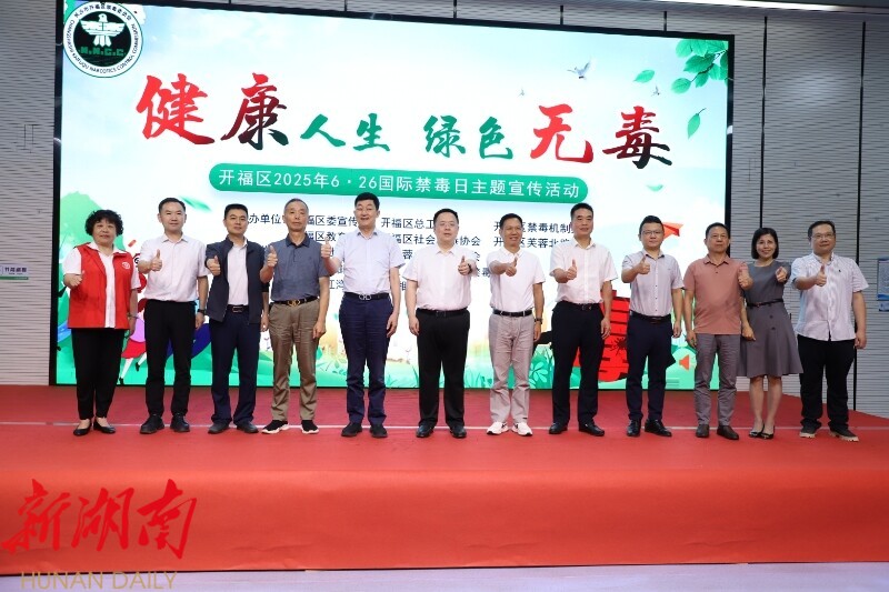 开福区委副书记、统战部长欧阳浩、区直部门相关领导、禁毒公益爱心企业代表、开福区各禁毒协会分会会长、行业协会及禁毒工作室负责人现场观摩,辖区500余名党员干部、志愿者代表及学生代表参与。