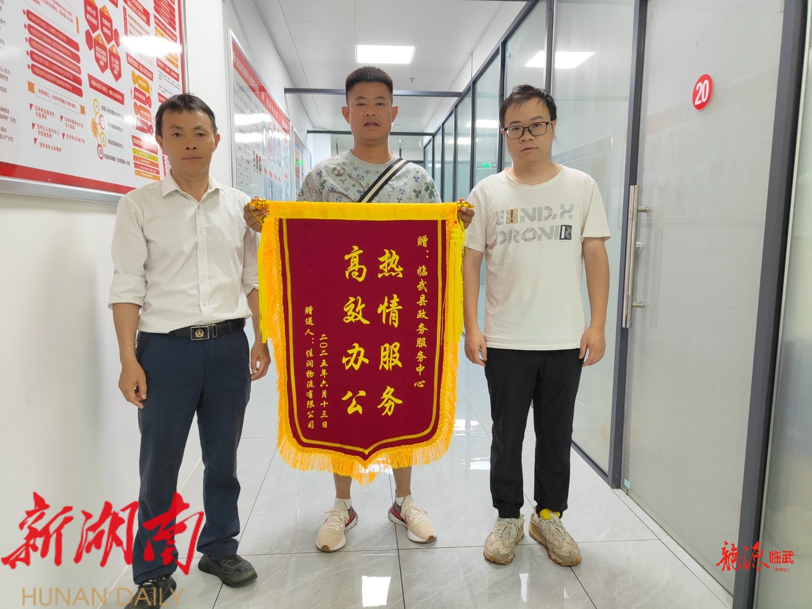 龙源临武客户端6月25日讯(通讯员 胡洋华 杨万春)近日,临武县政务服务中心交通运输局窗口工作人员收到一面印有“热情服务 高效办公”字体的锦旗,这是佳润物流有限公司的一名驾驶员对其高效服务、贴心帮助的由衷感谢。