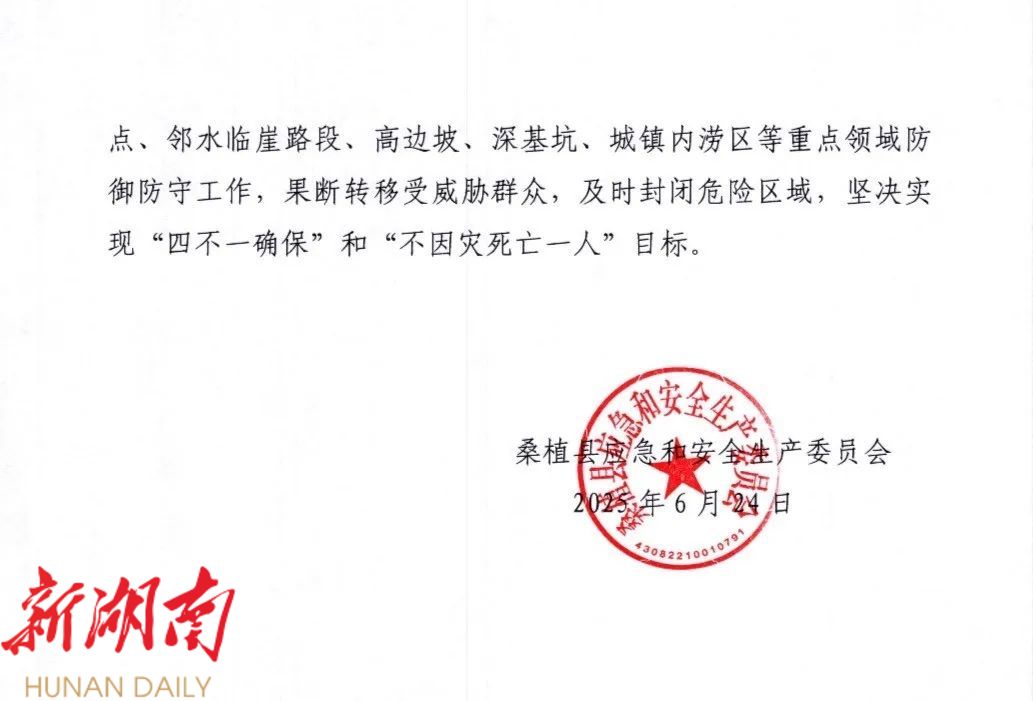 请各乡镇、县应急和安全生产委员会防灾减灾救灾专项小组防汛责任单位按照防汛Ⅲ级应急响应的要求,严格执行“责任领导一律下沉,危险区域一律封闭,遇险群众一律转移。”“当雨量达到临灾预警值时、发生险情异动时、风险隐患不能准确预判时,特别是当夜晚出现以上三种情况时,一律进行避险转移。”工作要求,做到“气象预警到位,值班值守到位,巡堤查险到位,现场劝阻到位,群众安置到位。”抓好“转移谁、谁组织、何时转、转到哪、转后如何管理。”,迅速落实落细工作措施,进一步加强值班值守、巡查巡护,密切关注天气变化,严密防范强降雨。做好山洪灾害危险区、地质灾害隐患点、切坡建房户、不稳定斜坡单元、水库山塘、涉改保留大坝水电站、涉水景区景点、邻水临崖路段、高边坡、深基坑等重点领域防御防守工作,果断转移受威胁群众,及时封闭危险区域,坚决实现“四不一确保”和“不因灾死亡一人”目标。