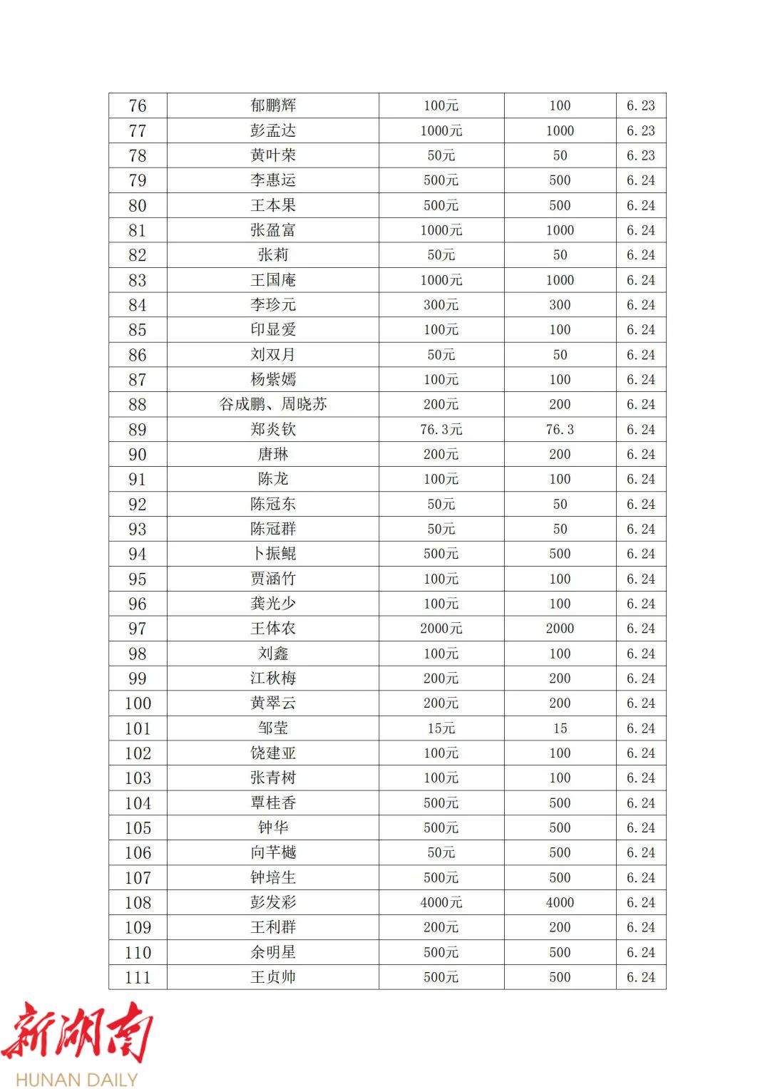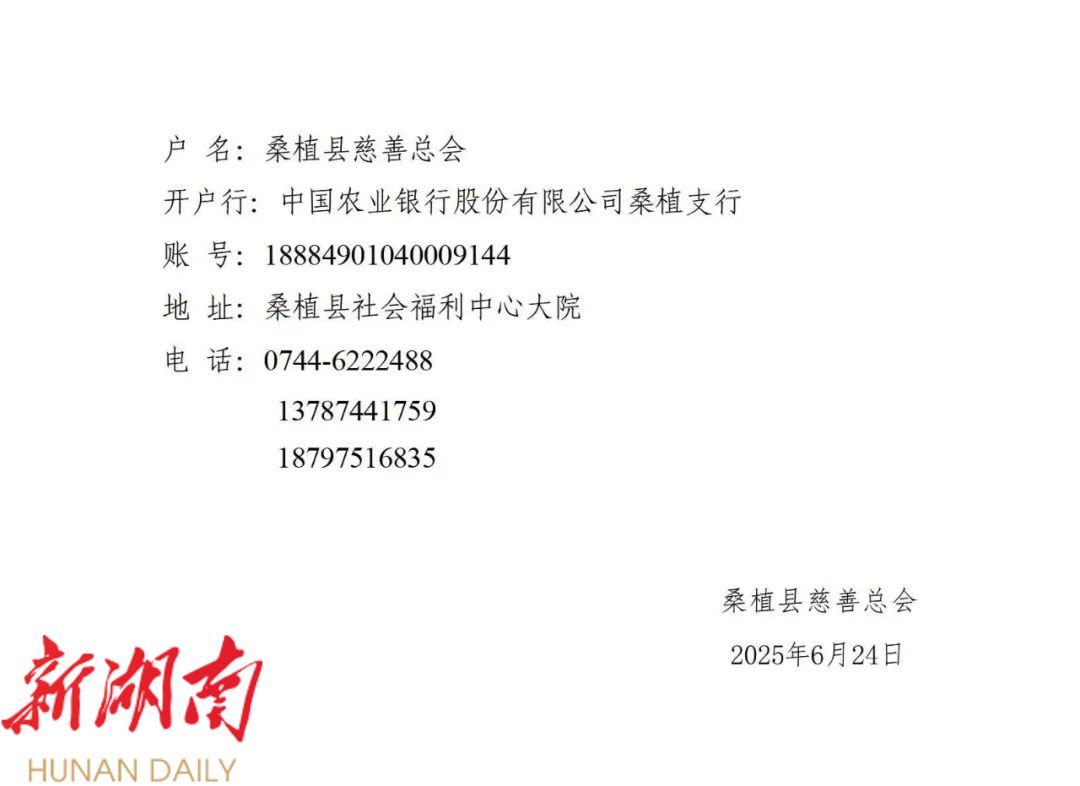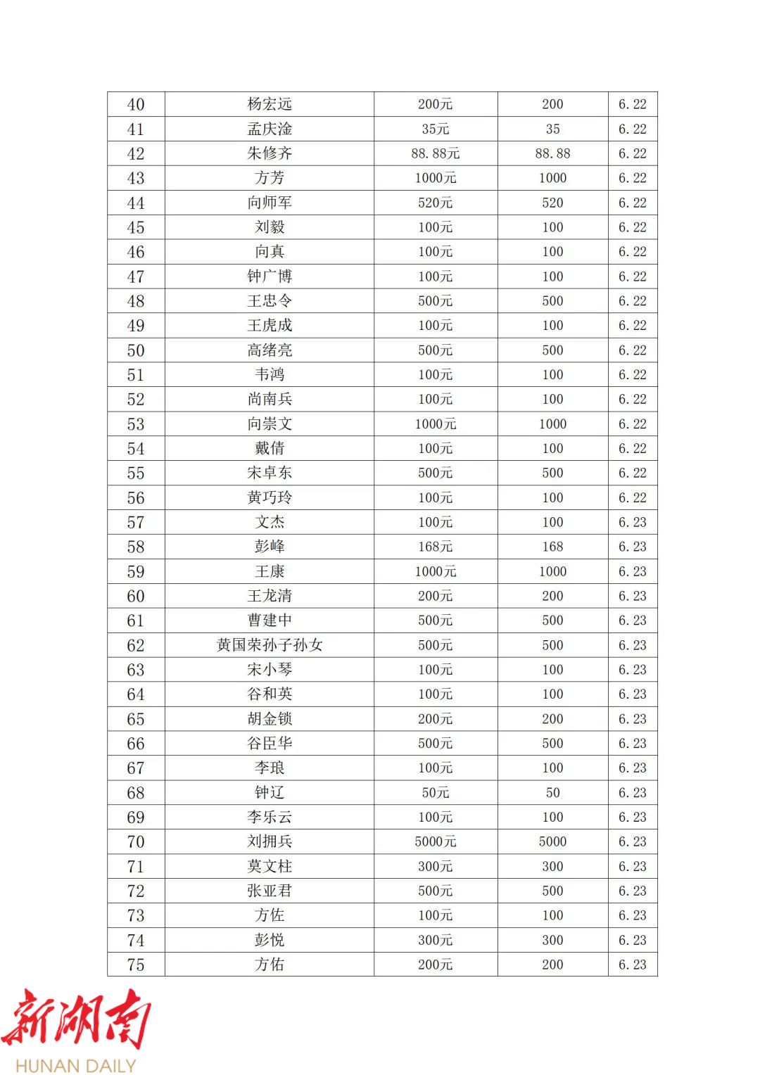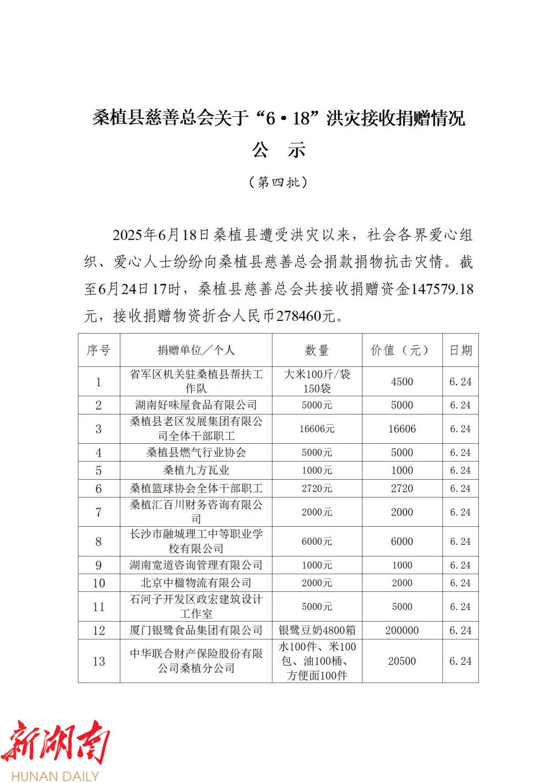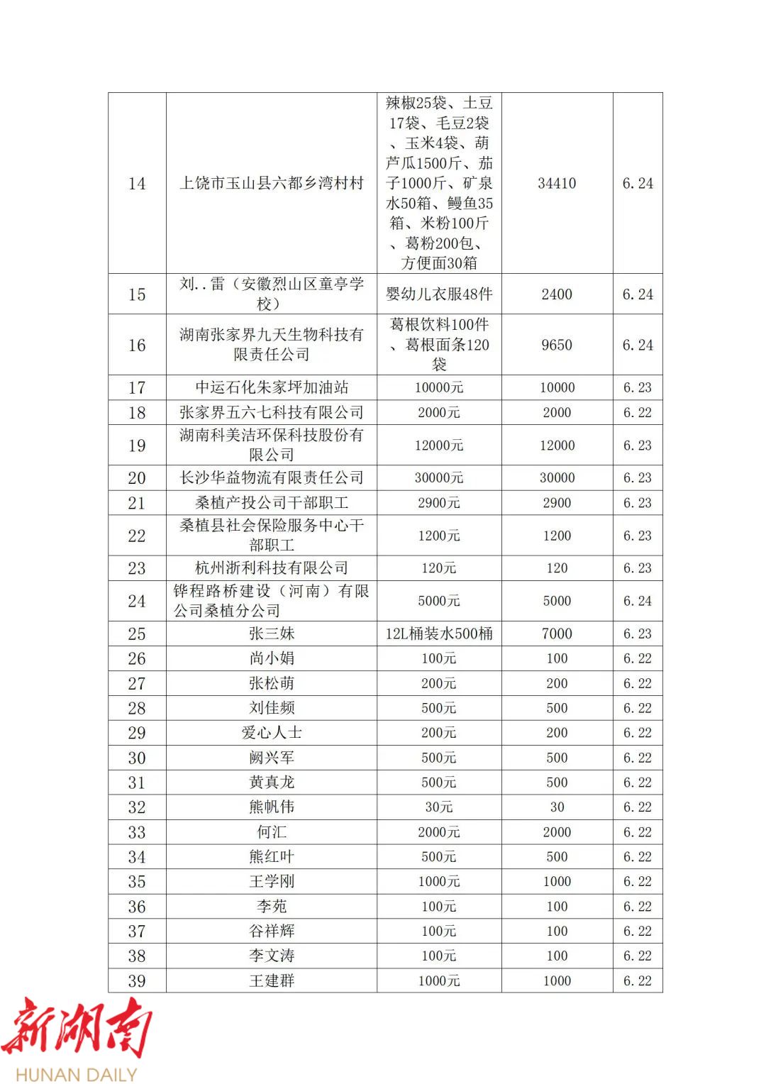 桑植县慈善总会关于“6·18”洪灾接收捐赠情况公示