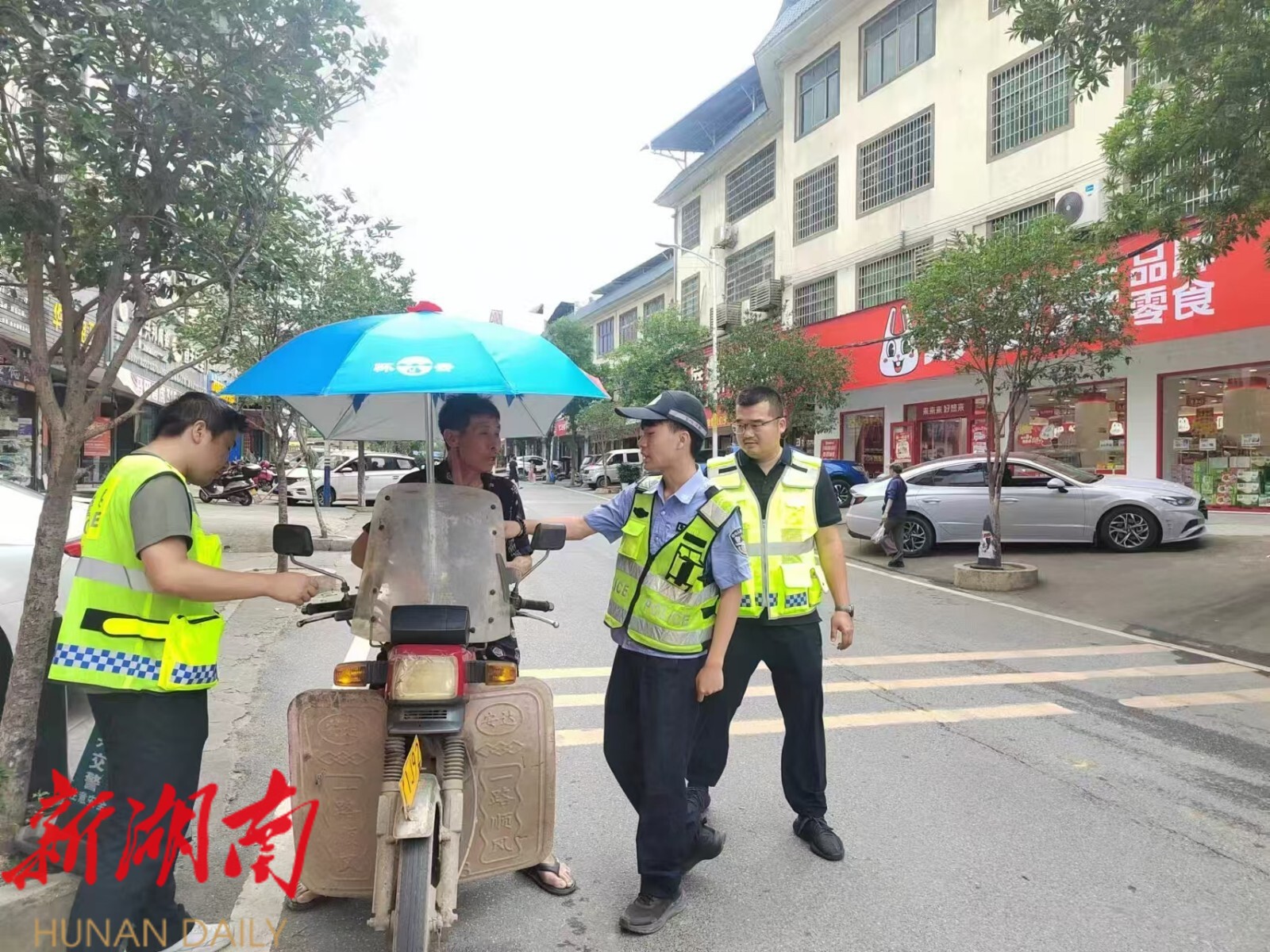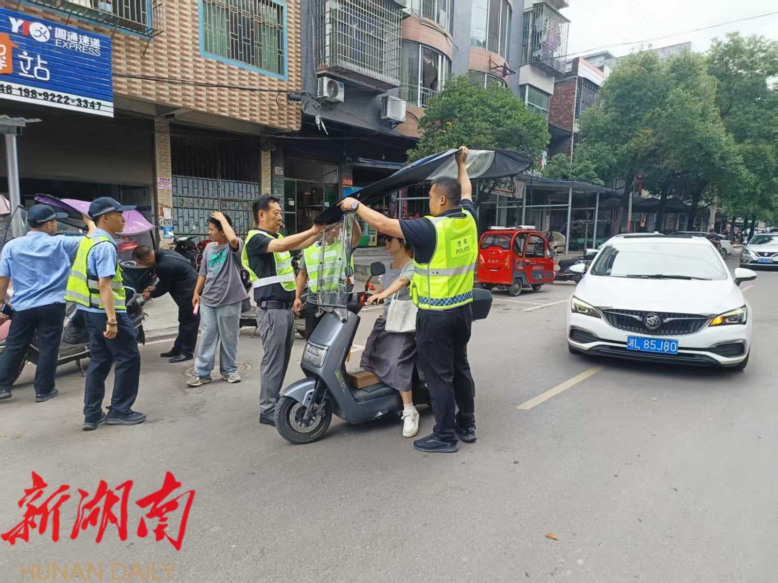 执法坚持处罚与教育并重,对未戴头盔人员以案说法开展警示教育,110余名驾乘人员经劝导后主动佩戴头盔;对违法加装遮阳伞行为,拆除销毁75把,有效遏制违规现象。