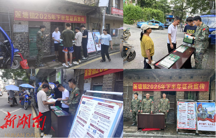 新桂阳6月25日讯(通讯员 李康检 成鑫 胡勇 陈雄 刘嘉琦)为扎实推进2025年度征兵工作,激发适龄青年参军报国热情,6月25日,莲塘镇人民政府利用赶集日人流密集的优势,在镇区集市设立征兵宣传点,开展“面对面、零距离”征兵政策宣传活动。