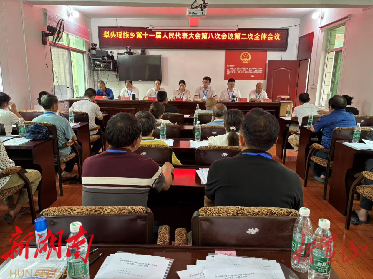 新蓝山客户端6月25日讯 (通讯员 唐晨瑶)6月24日,犁头瑶族乡第十一届人民代表大会第八次会议顺利召开。本次代表大会应出席代表46名,因病、因事请假8名,实际出席38名,出席人数符合法定人数。
