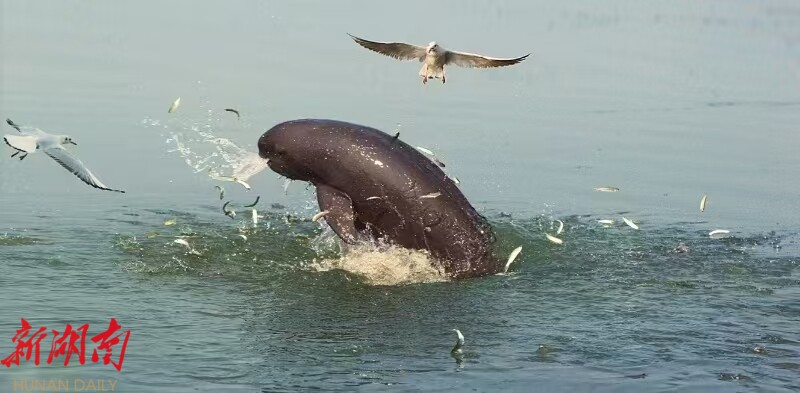 徐亚平着重介绍了“水中大熊猫”长江江豚,从其生活习性、形象特征再到他与志愿者们为拯救江豚所付诸的行动,解构了这场长达10年的“阵地战”,岳阳江豚保护协会多名志愿者因此负伤,但他们从未后悔。“江豚相约集体围猎,大老远构建一个包围圈,慢慢压缩‘鱼团’;最后总会有一个健硕的‘投篮手’,从水底爆破,打散‘鱼团’,让惊恐万状的鱼儿直往它们嘴里蹦!”谈及湘阴水域江豚的围猎时刻,徐亚平语气里是抑制不住的自豪,是“吾家有儿初长成”的喜悦。