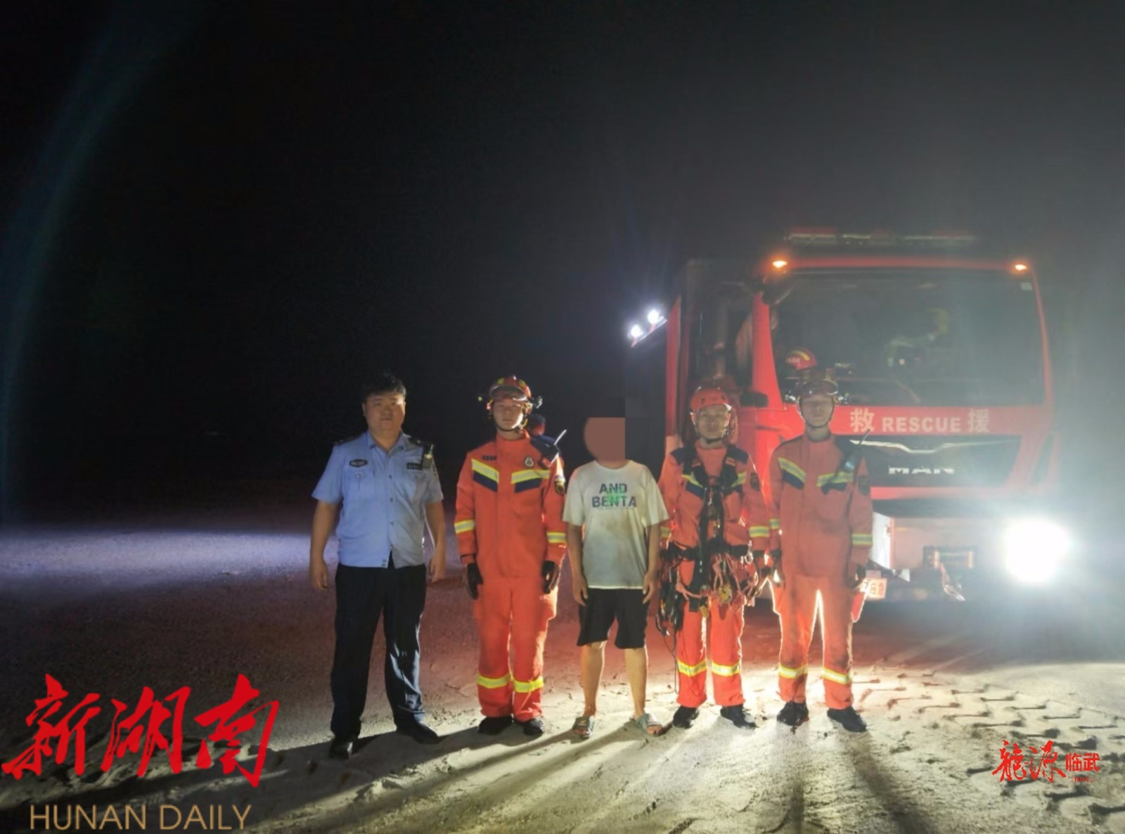 据了解,被困人员田某系永州市蓝山县人,因上山寻找祖坟迷路而被困。在得知具体情况后,该镇迅速与赶到的消防部门组成救援队伍,携带照明设备、绳索和砍刀等物资,克服夜间视线差、地形复杂等困难,通过无人机定位与地面搜救结合的方式,经过近4个小时的努力,于凌晨0点左右找到被困人员。所幸被困人员身体状况良好,仅轻微擦伤,已被安全护送下山。