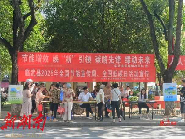 龙源临武客户端6月26日讯(通讯员 邓苏航 李盈)6月25日,临武县机关事务服务中心联合县发改、城管等单位,在滨水游园开展2025年全国节能宣传周暨全国低碳日活动集中宣传。