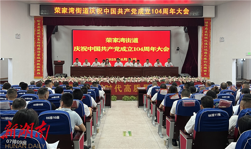湖南日报·新湖南客户端6月26日讯(通讯员 黄阳娇) 6月26日,荣家湾街道举行庆祝中国共产党成立104周年大会,来自街道各基层党组织的党员代表齐聚一堂,共同回顾党的光辉历程,凝聚奋进力量。