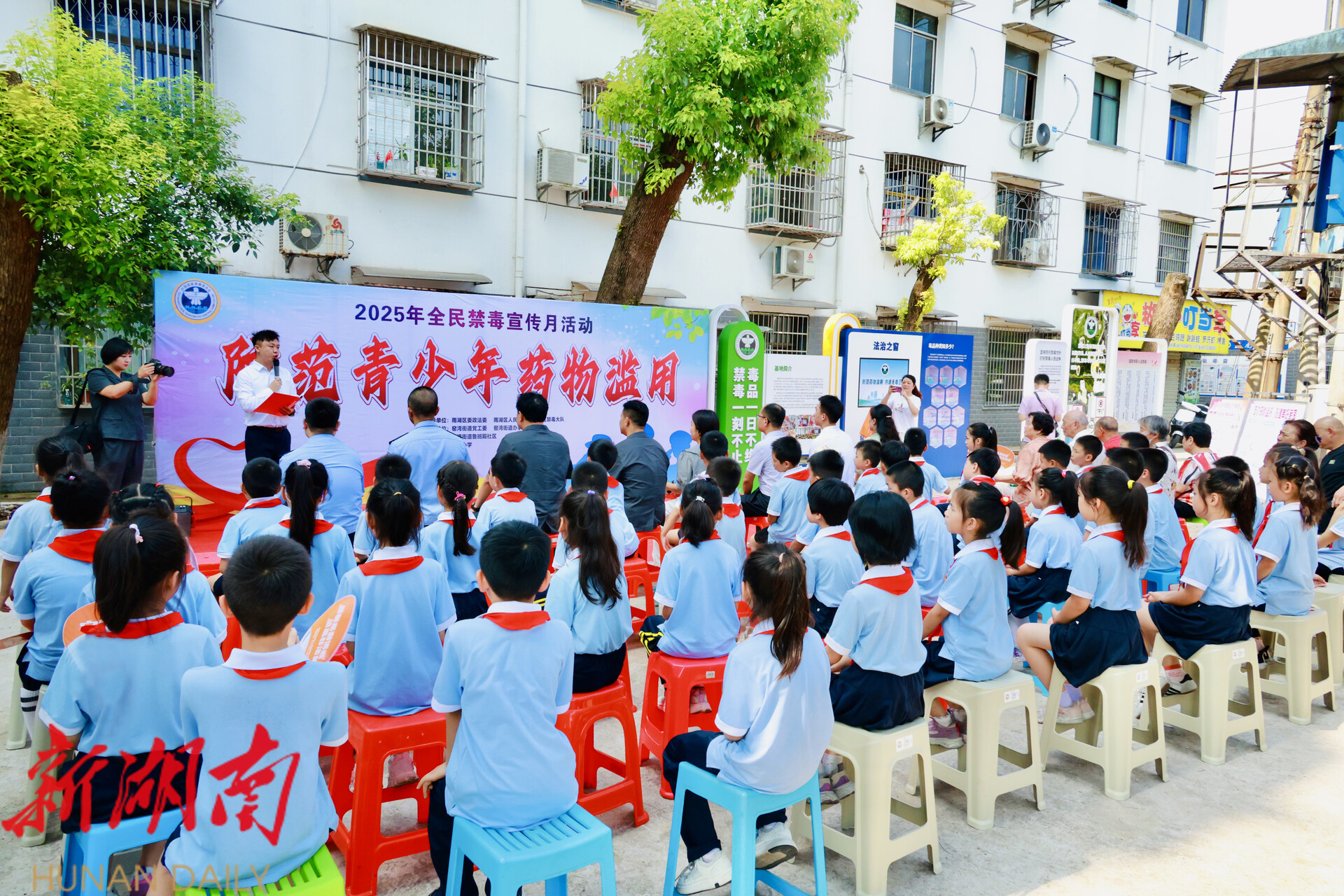 雨湖融媒6月2 6 日讯 (记者 陈娟 赵栋 通讯员 许焕坷 谷日华 )今年6月26日是第38个国际禁毒日,当天,为进一步强化全民识毒防毒拒毒意识 ,雨湖区窑湾街道鲁班殿社区联合雨湖区委政法委、区人民法院、区禁毒大队、窑湾街道、金庭学校等单位及社区居民,在鲁班殿社区法治禁毒教育基地开展“防范青少年药物滥用”主题宣教活动。雨湖区人民政府副区长伍颜出席活动并致辞。