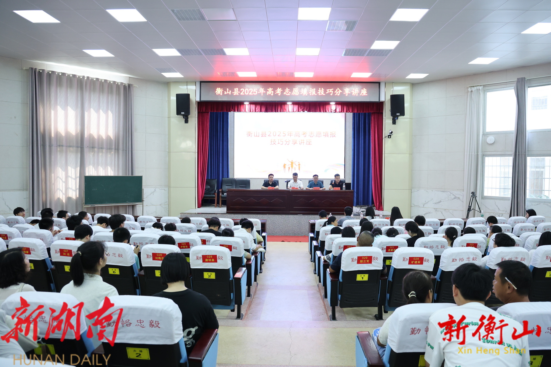 新衡山客户端6月26日讯(记者:蒋鹏 旷雨澄) 6月26日,2025年全国高考志愿填报通报开启。为帮助让广大高考考生及家长充分了解高考招生政策、志愿填报和录取规则,共青团衡山县委、衡山县岳云中学团委组织开展2025年“线上+线下”高考志愿填报技巧分享讲座。