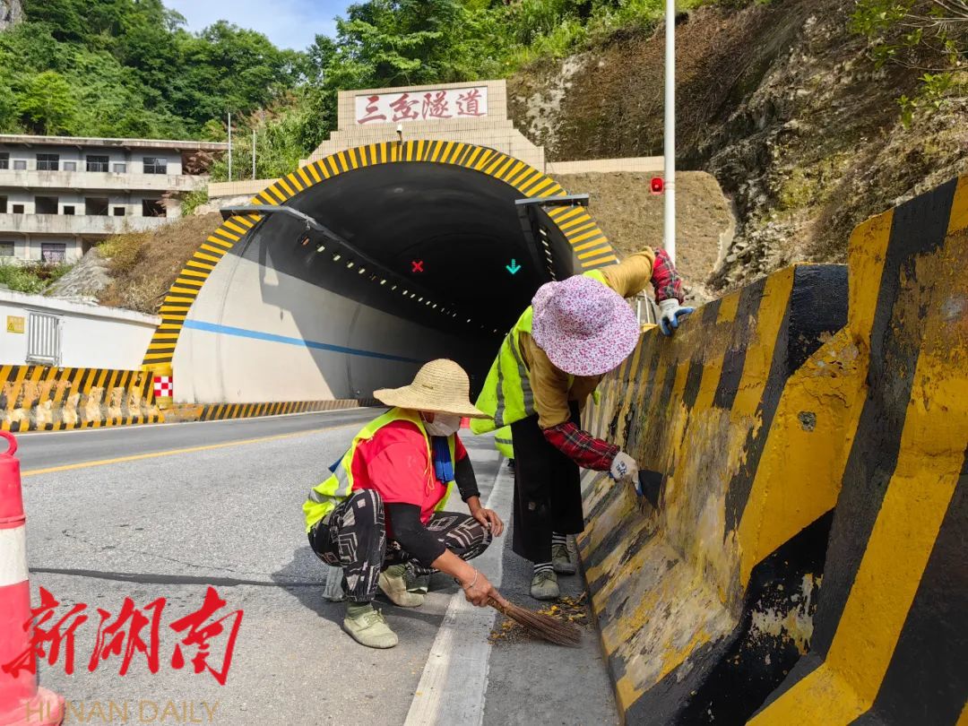 湖南日报·新湖南客户端6月26日讯( 通讯员 胡苗 谷珊 田酥) 近日,在国道G241线雨露学校至三岔隧道路段安全示范路建设工程项目施工现场,工人们正抓紧对波形护栏和混凝土护栏进行表面清理与刷漆翻新,一派热火朝天的繁忙景象。这条承载着永定区沅古坪镇、王家坪镇等乡镇百姓出行的交通要道,即将完成从“隐患路”到“安全示范路”的蜕变。