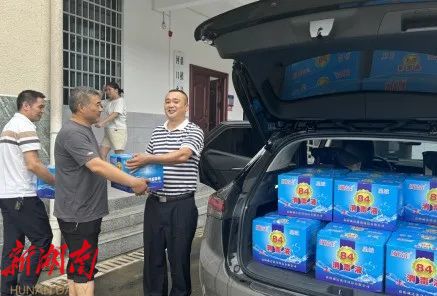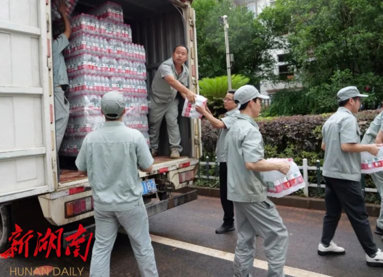 农夫山泉连夜调配10万瓶饮用水捐赠给受灾群众,党支部成员积极参与到抗洪救灾中;产业开发区职工乘坐皮划艇,为因灾被困工人运送饮用水、方便面、毛毯等生活用品;张家界融和实业党支部书记黄最恩捐赠400瓶84消毒液,并联合泰宏汽贸朱勇、青青果教育力行社工周桂琴捐赠棉被120床,蔬菜1400斤。