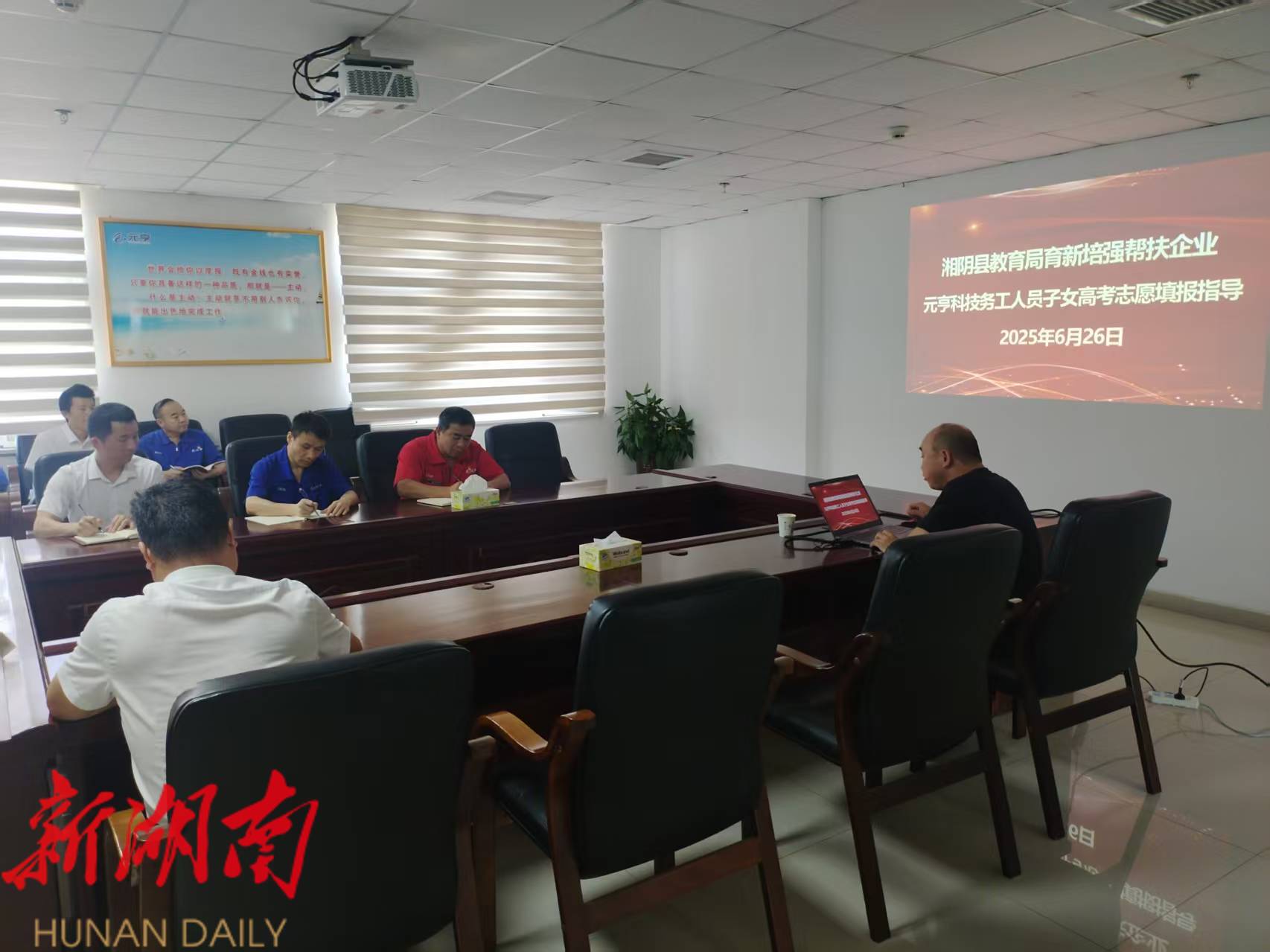 湖南日报·新湖南客户端6月26日讯(通讯员 周贝 熊旺)“教育局把服务送到企业门口,解决了我们最关心的事儿,太贴心了!”为切实解决帮扶企业职工后顾之忧,助力职工子女科学规划升学路径,6月26日,湘阴县教育局走进帮扶企业元亨科技,开展高考志愿填报指导专场活动。