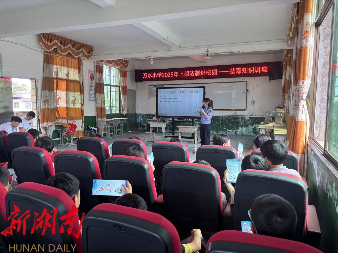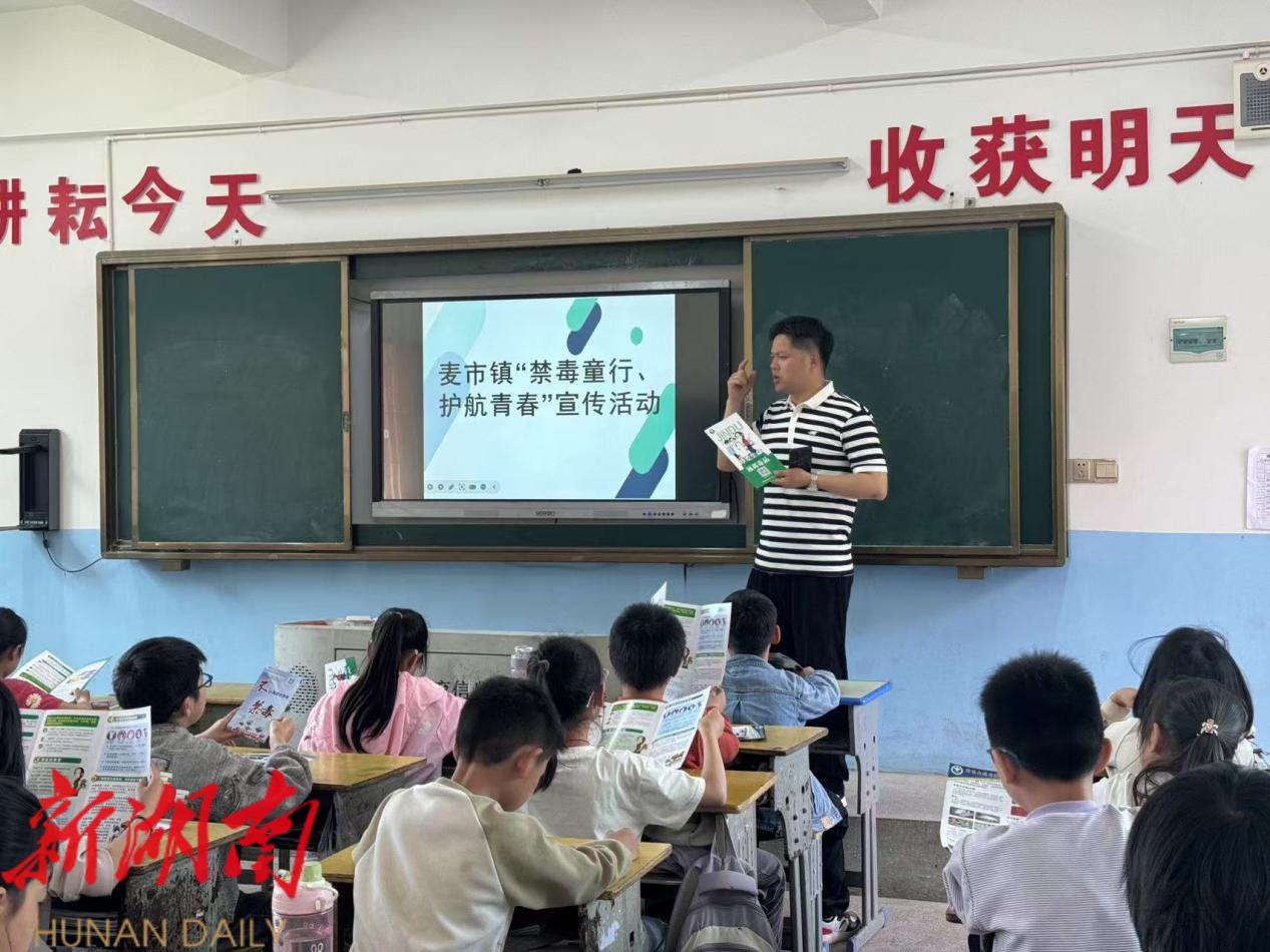 近日,临武县麦市镇中心小学联合麦市镇司法所、派出所开展“禁毒童行 护航青春” 宣传活动,讲师走进课堂,用生动讲解普及禁毒知识,筑牢青春“防毒墙”。(通讯员 陈淑婷)